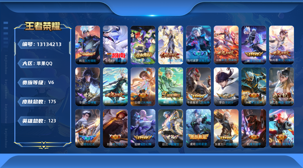 游戏区服:王者荣耀 / 苹果系统 / QQ帐号