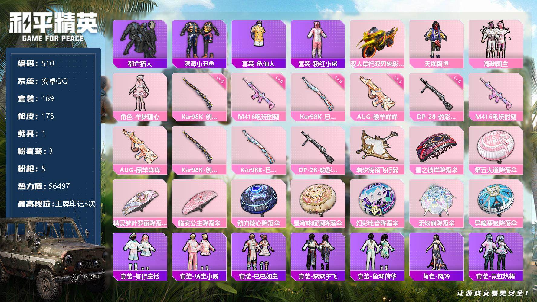 游戏区服:和平精英 / 安卓系统 / QQ账号