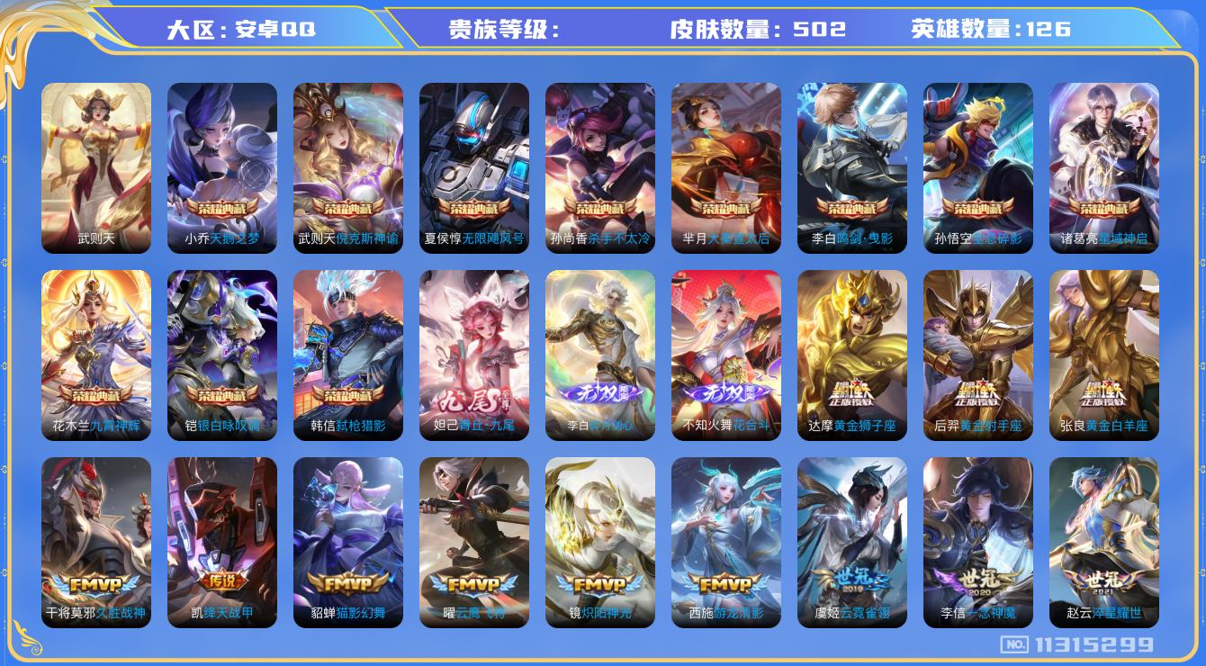 【11067711】【可二次】【QQ(安卓)】暗影游猎 花朝如约 原初探秘者 玄武志 韩信 真爱至上 沙漠行僧 紫霞仙子 挚爱花嫁 前尘镜 天鹅之梦 仲夏夜之梦 大秦宣太后 山海·苍雷引 碎月剑心 貂蝉 银白咏叹调 万华元夜 枫霜尽 诗剑行 启示之音 醍醐杖 飞莺探春 逐梦之翼 海洋之心 古海寻踪 神器·狴犴令 时之恋人 云霓雀翎 电玩小子 白晶晶 深海之息 露娜 久胜战神 云鹰飞将 寅虎·展翼