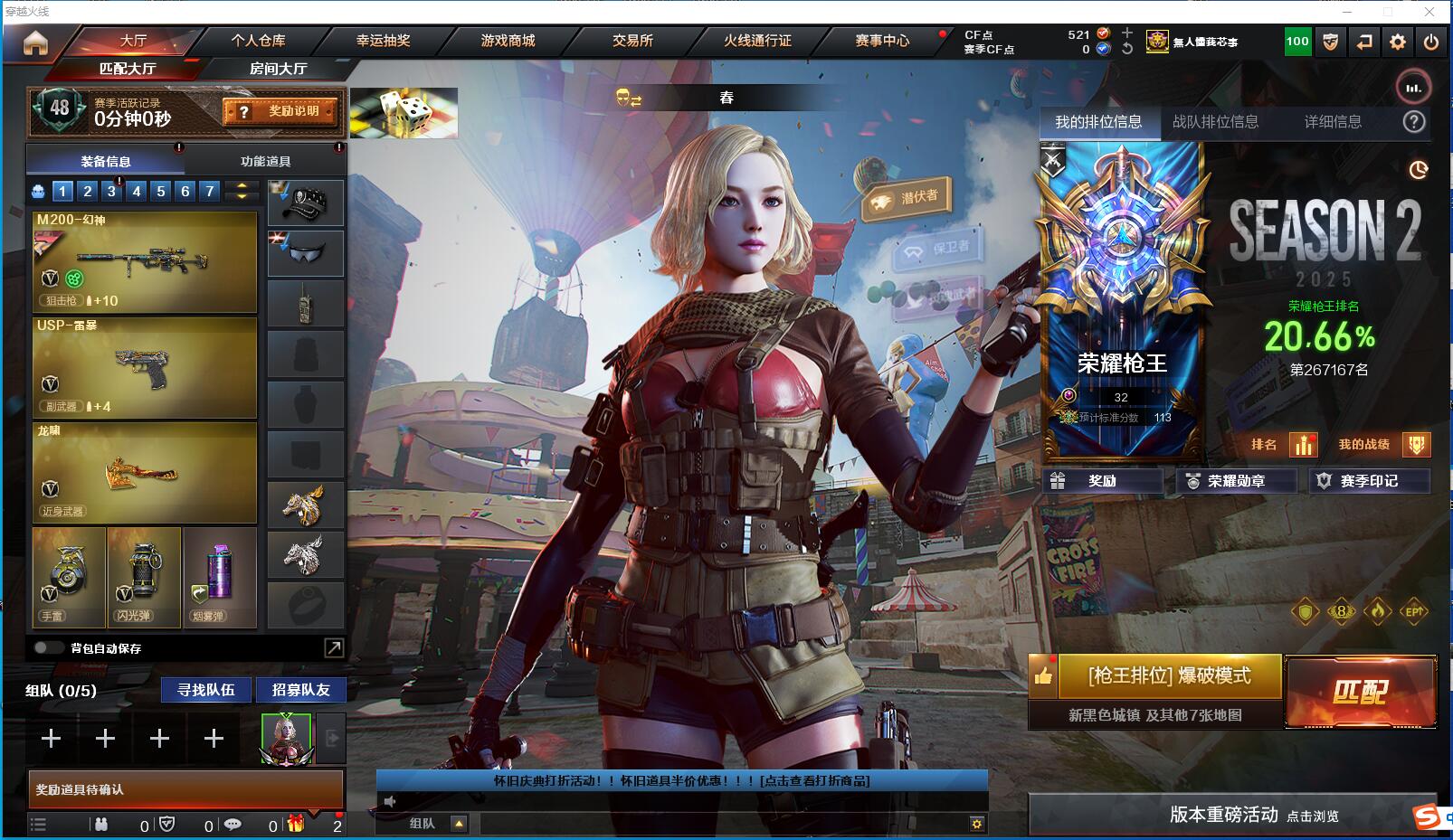 游戏区服:穿越火线 / 南部战区 / 湖南一区互 通