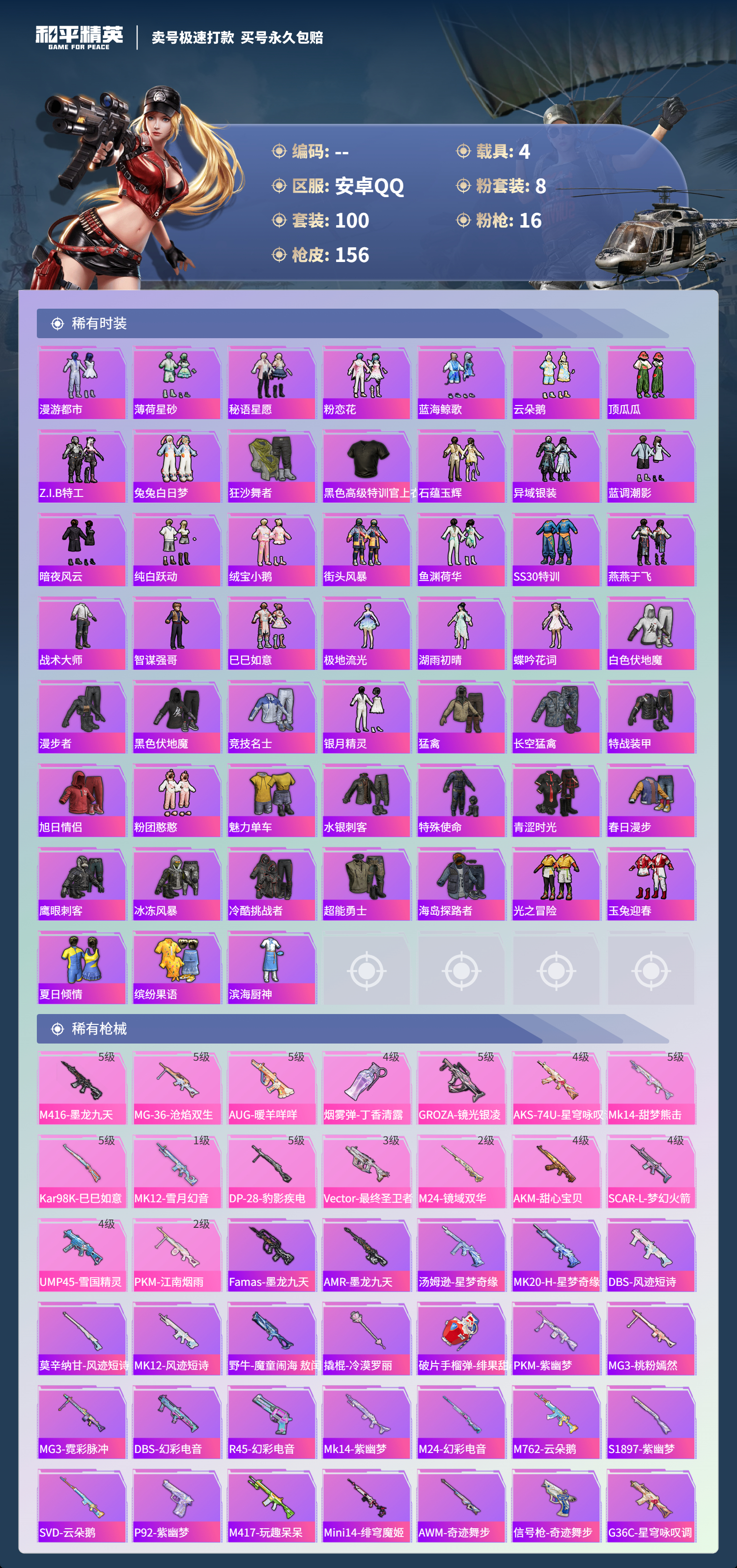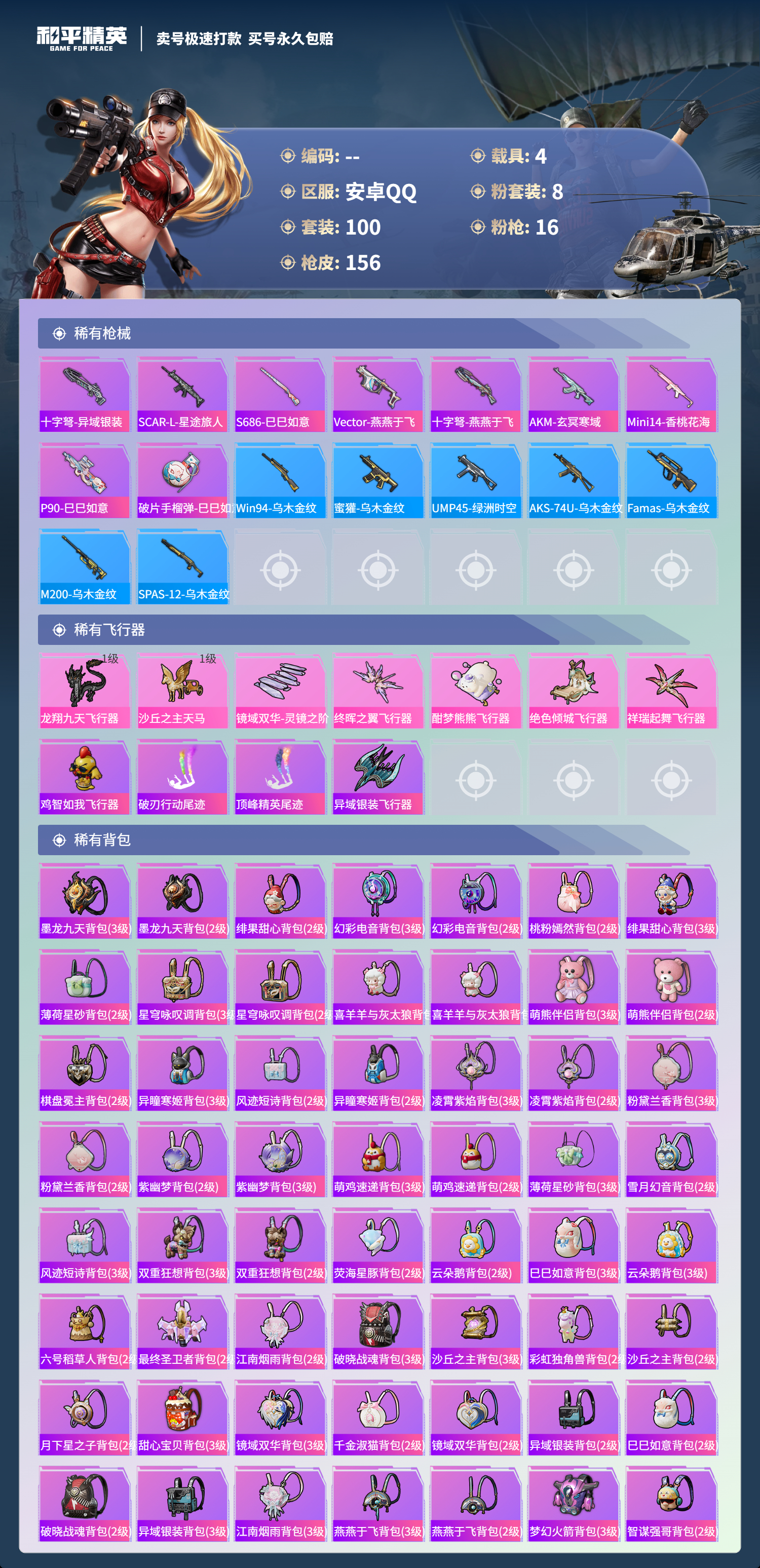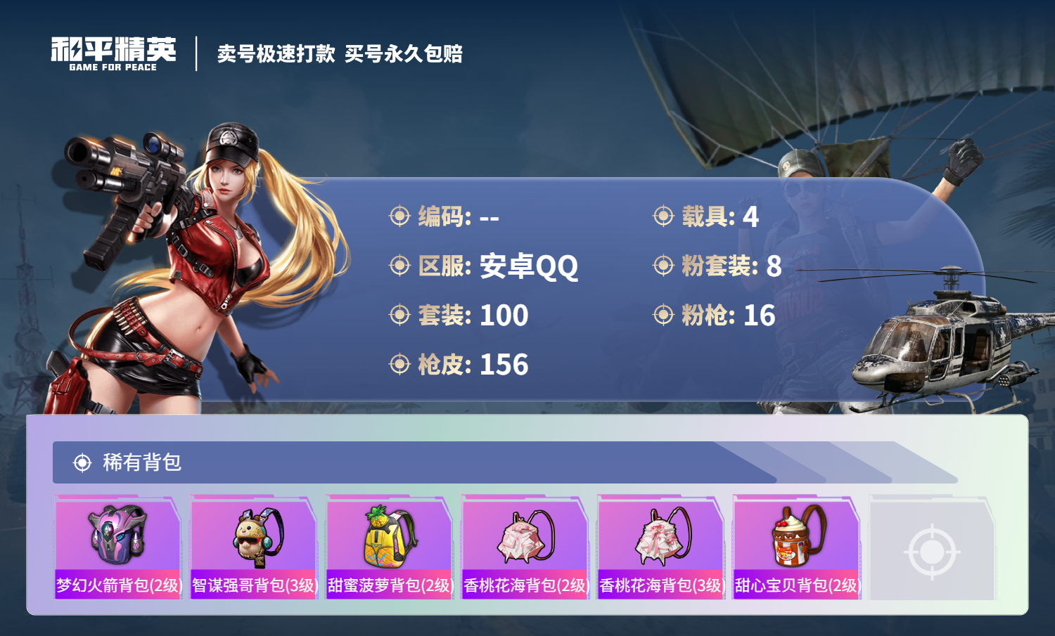 【11069534】【不可二次】【安卓QQ】合金龙骨蓝色 SCAR-L-梦幻火箭 M24-镜域双华 水银刺客 S686-奇异狩猎者 漫步者 都市猎人 奇异狩猎者 PKM-江南烟雨 SCAR-L梦幻火箭 东方飞龙 UMP45-雪国精灵 狂沙舞者 龙翔九天飞行器 M416-墨龙九天 沙丘之主-图卡盟 UMP4雪国精灵 天使彩虹糖 宝贝奶油派 绝色倾城飞行器 浪漫天命 暗影哥特 雪山精英 AKM-甜心