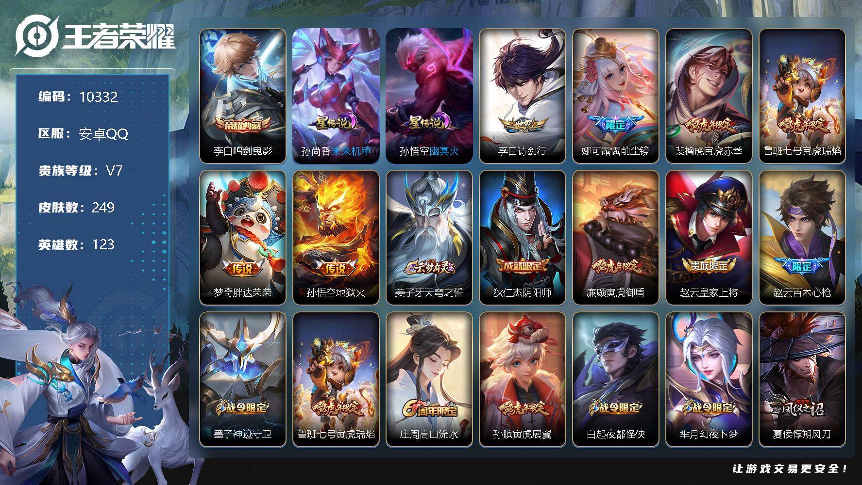 游戏区服:王者荣耀 / 安卓系统 / QQ账号
