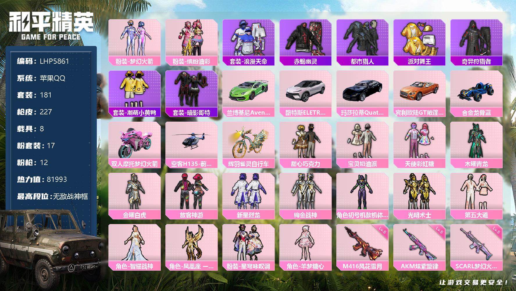 游戏区服:和平精英 / 苹果系统 / QQ帐号
