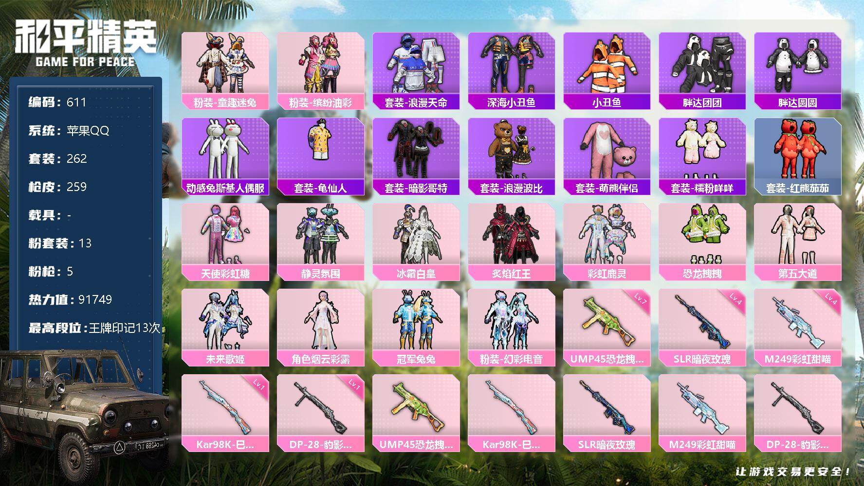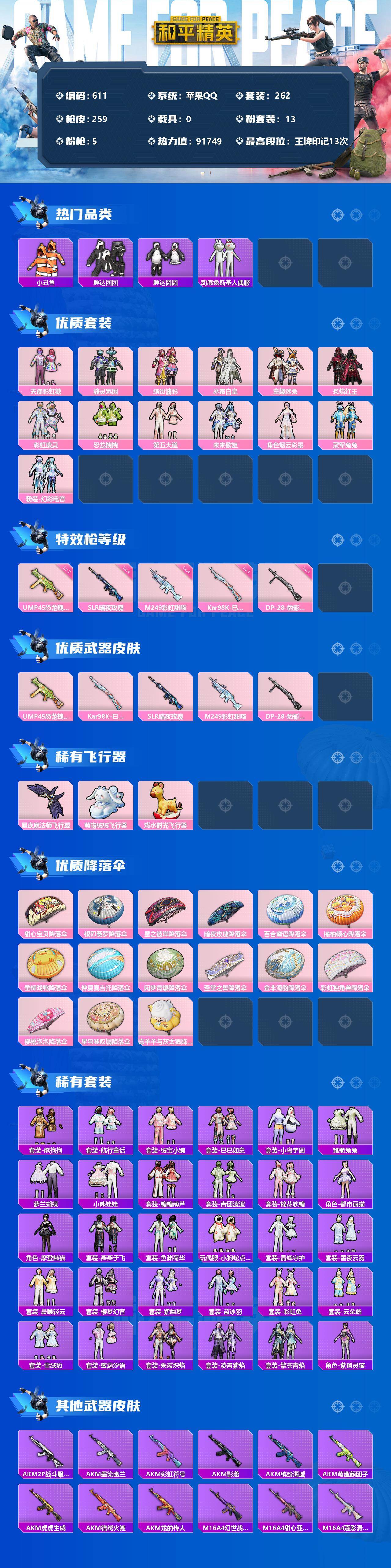 游戏区服:和平精英 / 苹果系统 / QQ帐号
