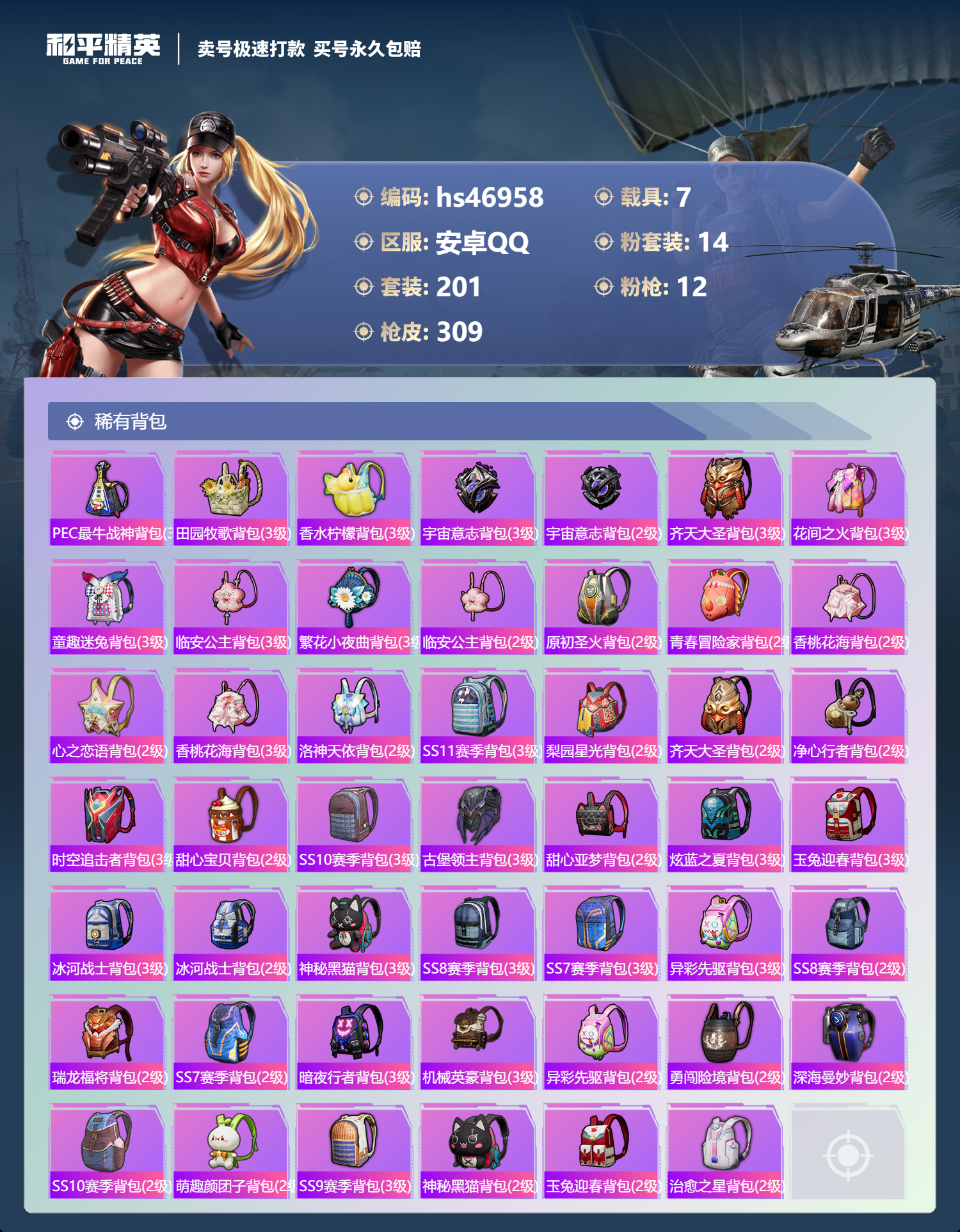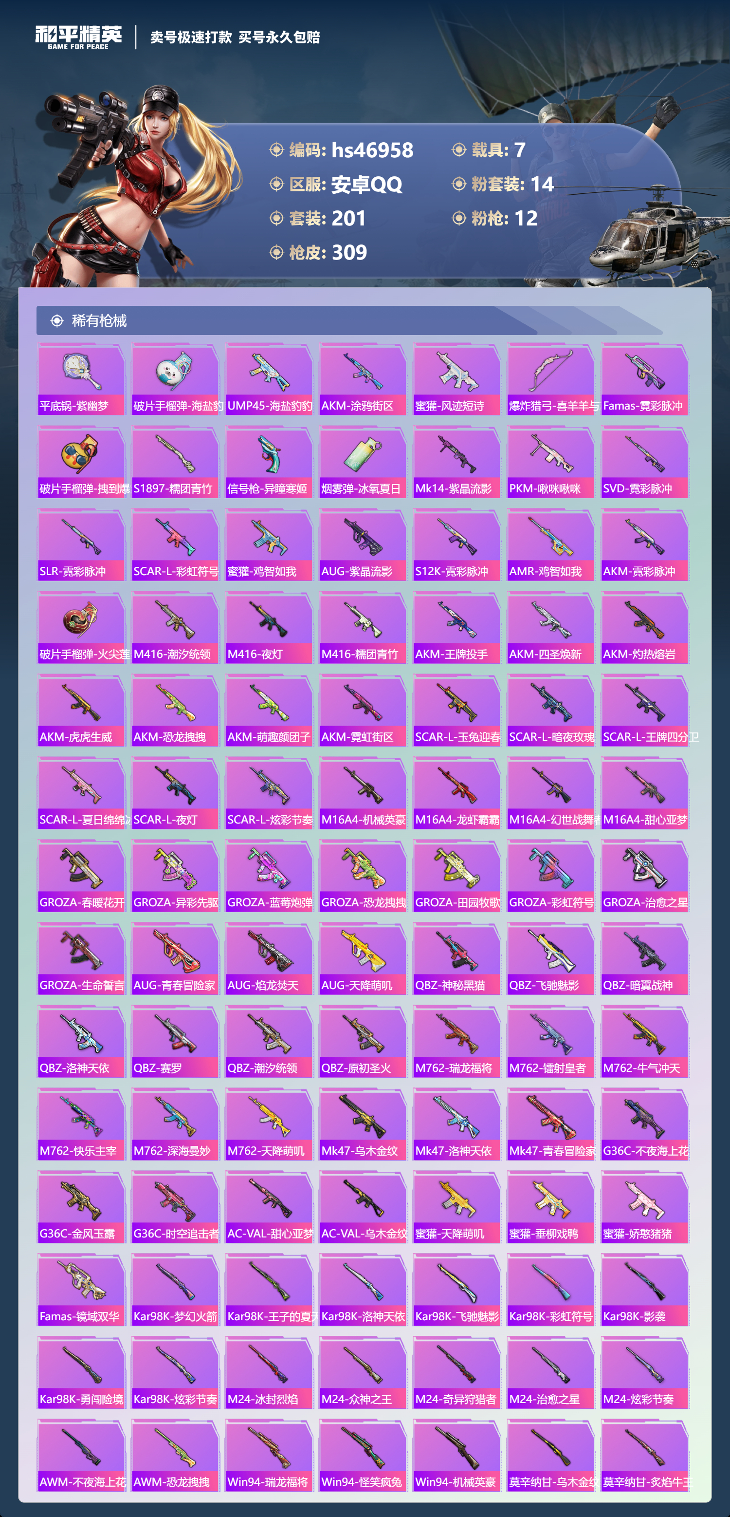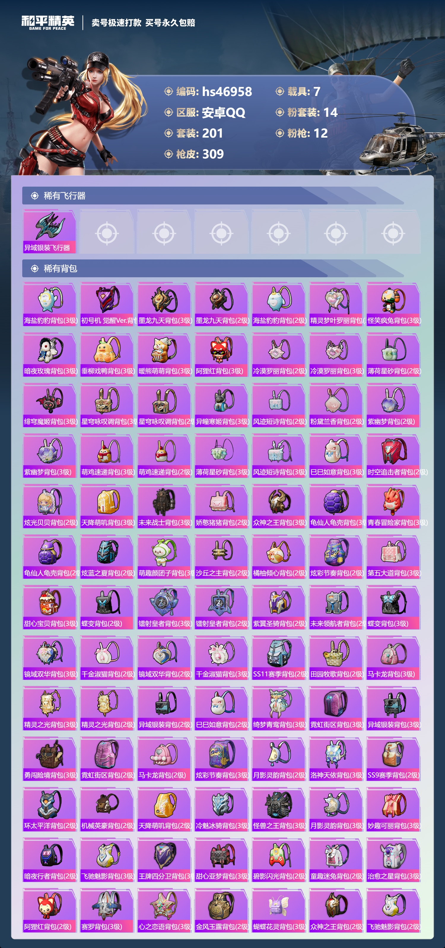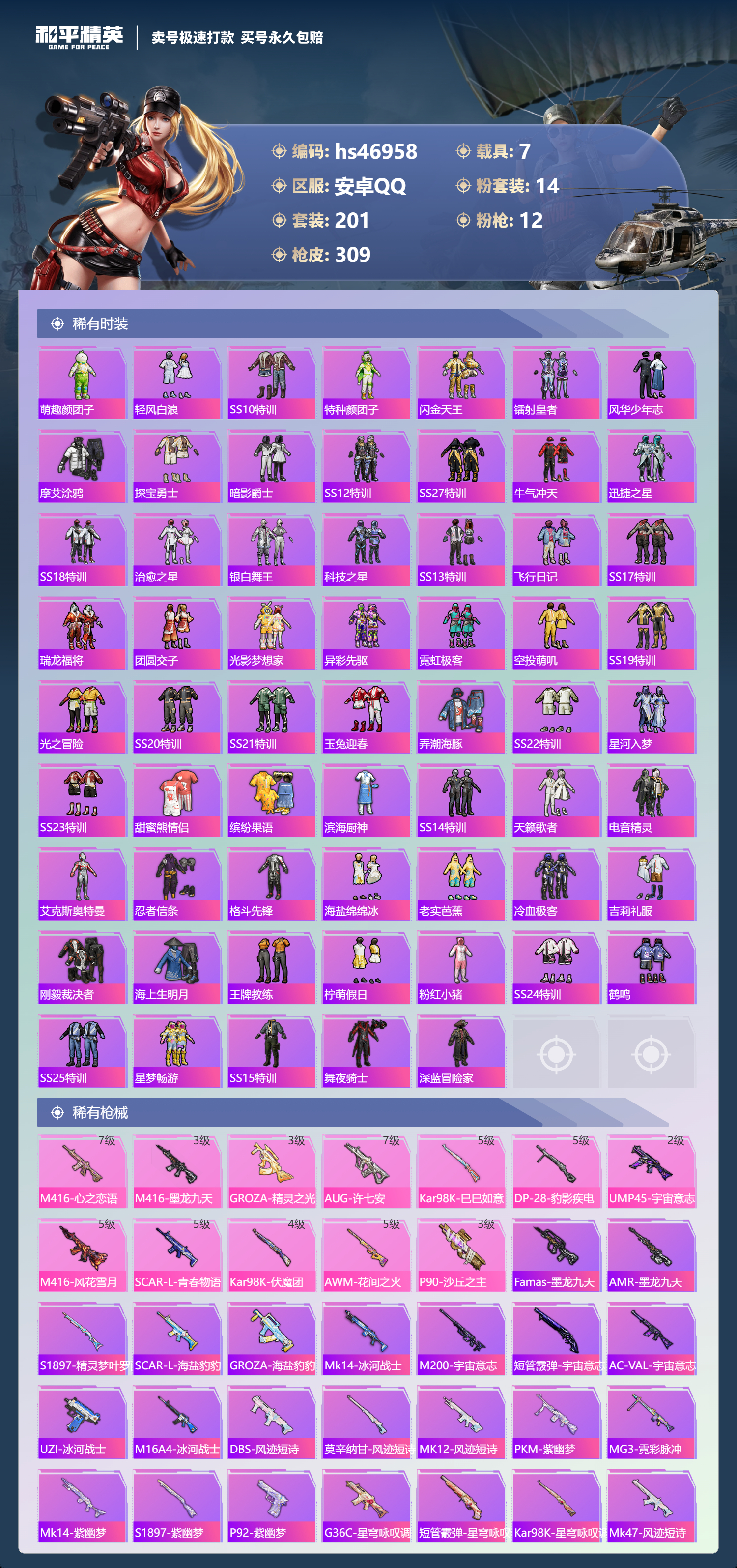 【11139233】【不可二次】【安卓QQ】龟仙人 双刃魅影红色 苍蓝魅影 豚鼠丹丹 忍者信条 Mini14-林间仙鹿 沙丘之主-图卡盟 M416-心之恋语 麻辣鲜香锅 碧影闪光 特斯拉R水滴蓝 Kar98K-伏魔团 纯白誓言 紫电风暴 兰博SVJ绿色 M762-瑞龙福将 齐天大圣飞行器 海洋之心 新侠客行 UMP45-宇宙意志 龙翔九天飞行器 兰博SUV黄色 齐天大圣 香水柠檬 白月香洋装 庄