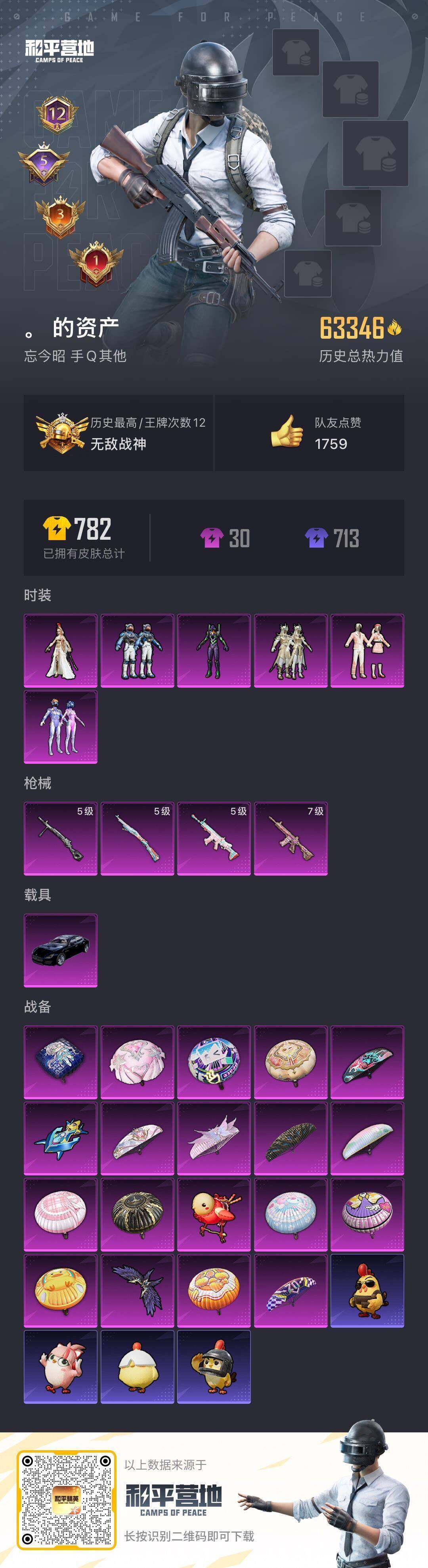 【店主推荐捡漏号!可直接换绑】安卓 手Q-无敌战神框-6粉装-4特效枪-1载具-3粉色飞行器-63346热力值-12王牌印记-177套装-202枪皮 【热门品类】:粉装-梦幻火箭,套装-浪漫天命,套装-都市猎人,套装-奇异狩猎者,角色-军刀雅典娜,套装-龟仙人,套装-暗影特 【粉色载具】:玛莎拉蒂Quattroporte(夜幕蓝) 【粉色套装】:...