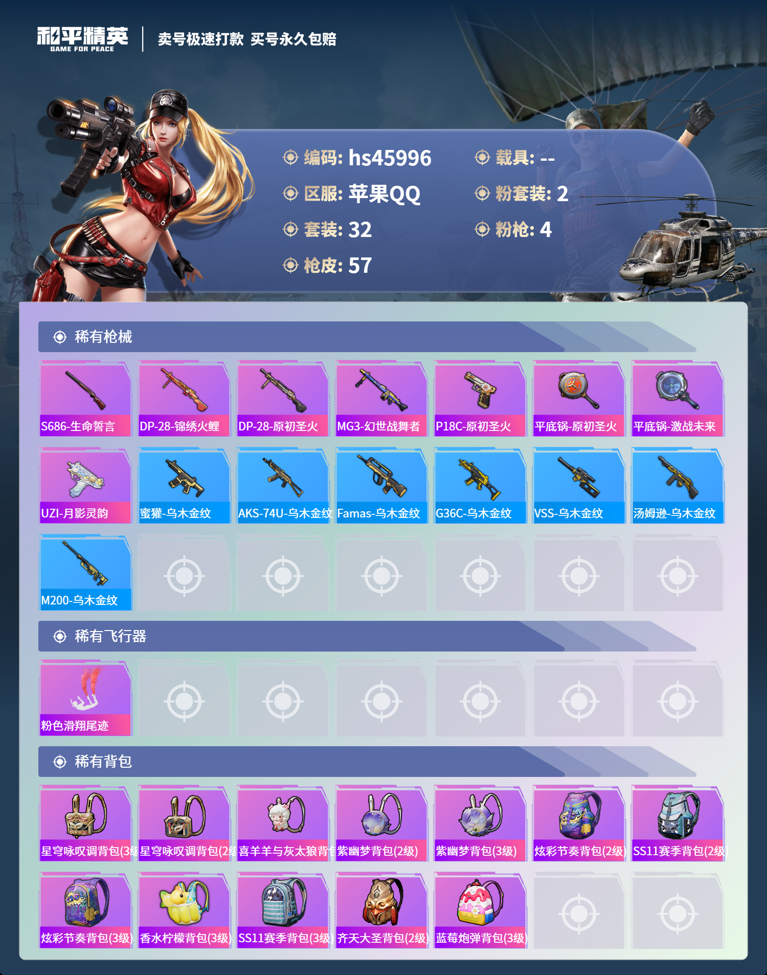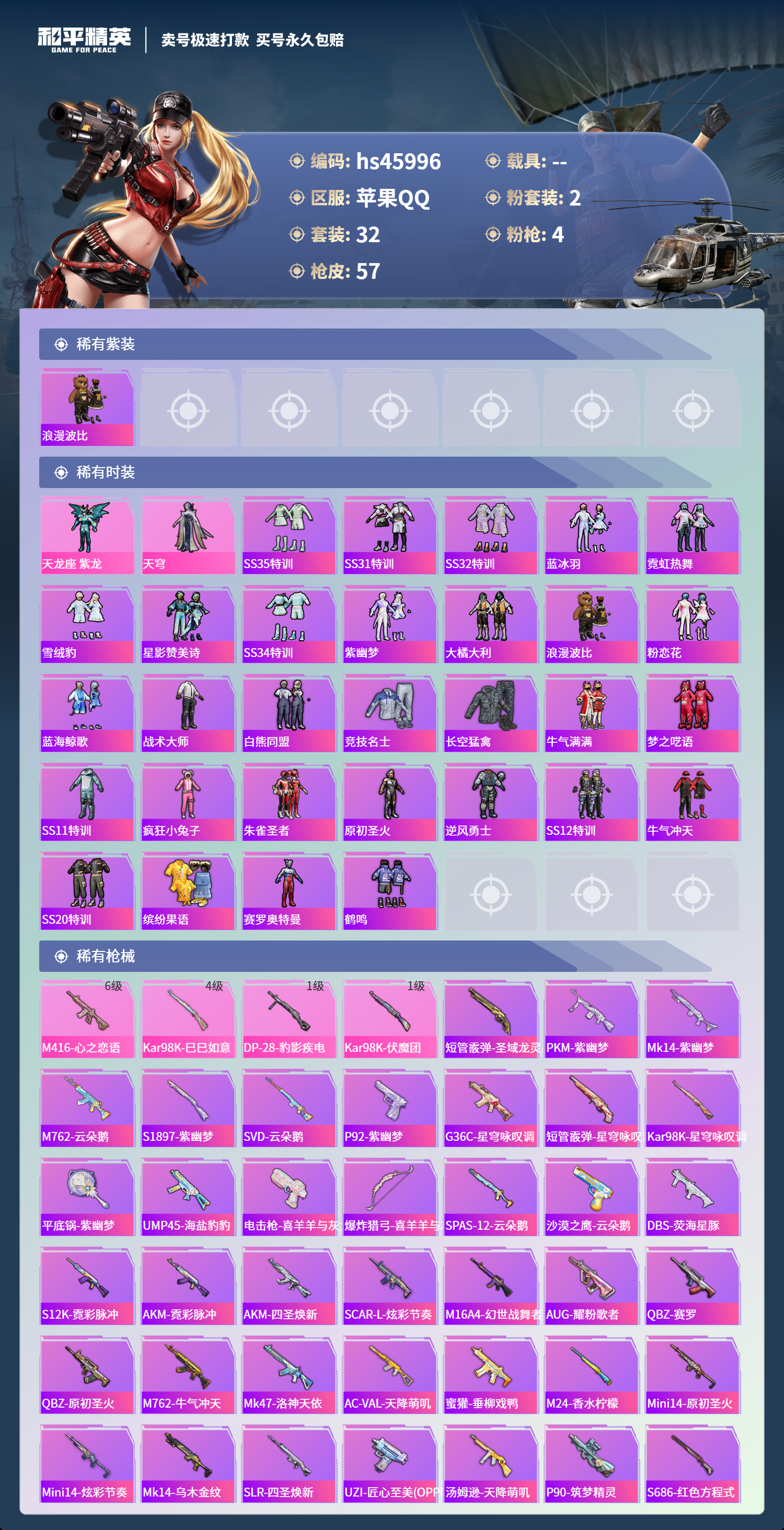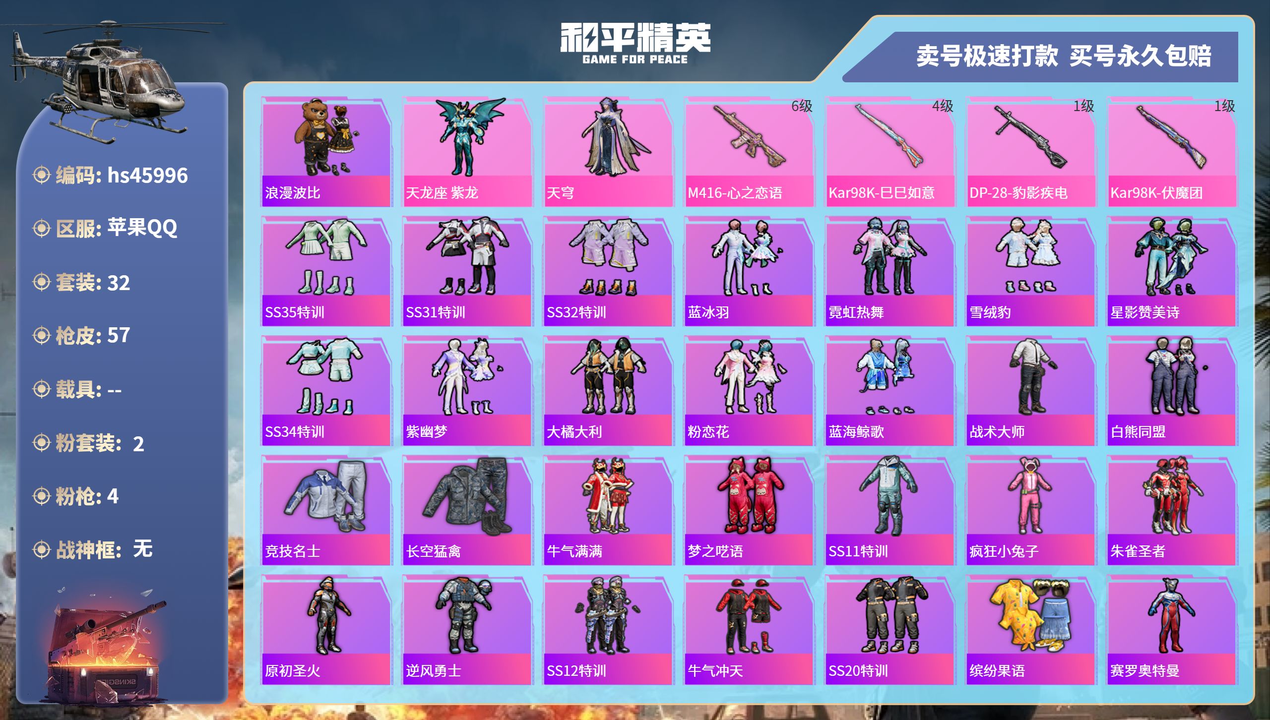 游戏区服:和平精英 / 苹果系统 / QQ帐号