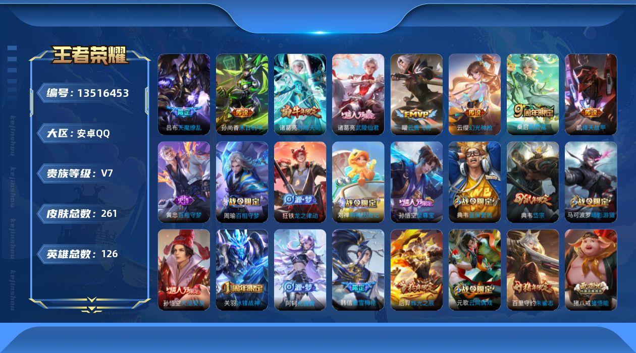 【11154981】【不可二次】【QQ(安卓)】霸王丸 乱世虎臣 后羿如梦令 暗影游猎 鹰眼统帅 水晶猎龙者 原初探秘者 圣诞恋歌 优雅恋人 星夜王子 岱宗 沙漠行僧 重装意志 万华元夜 御銮 修罗 千军破阵 特工魅影 醍醐杖 德古拉伯爵 江河有灵 古海寻踪 丁香结 魅力维加斯 云鹰飞将 箭羽风息 狮舞东方 御旌 弈星混沌棋 大漠名商 航海奇遇记 驭风魔法 乘风破浪 擒涛扼浪 圣诞狂欢 绛天战甲
