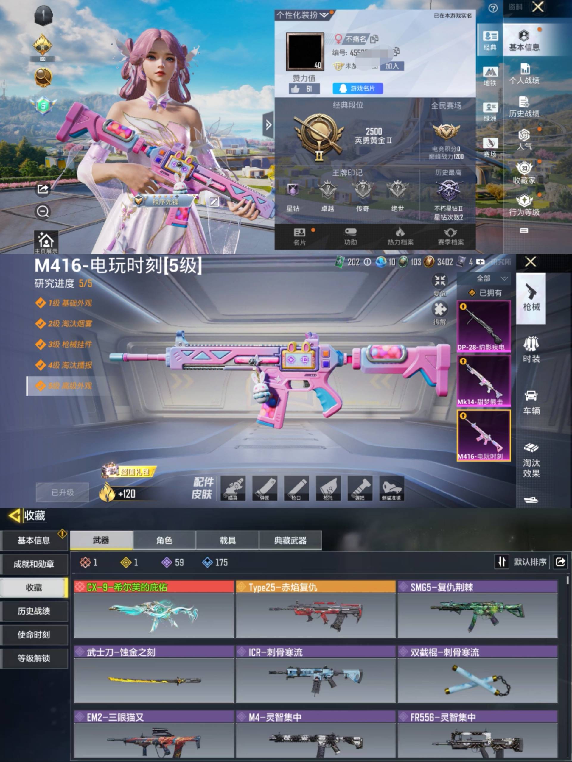 [13040037]H6340和平使命召唤一体号 有二次 安卓Q-段位黄金 56套装84枪皮 【1粉装】 星之彼岸 【3特效】 M416-电玩时刻 5级 Mk14-甜梦熊击 5级 DP-28-豹影疾电 5级 【热门】 角色-碟吟花词 凌霄紫焰 朱霞炽焰 迪迦奥特曼 艾克斯奥特曼 捷德奥特曼 (安Q使命-段位白银 72级 【1神话】 CX-9-希尔芙的庇佑 【1传说】 ...