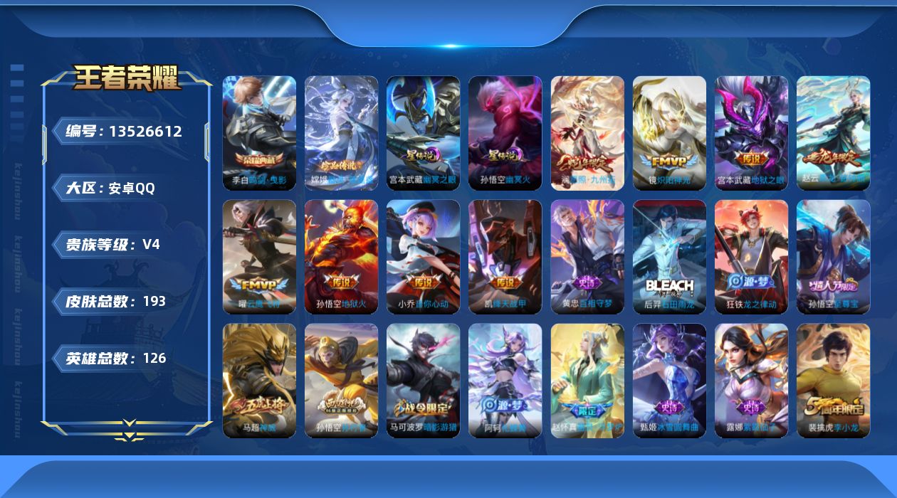 游戏区服:王者荣耀 / 安卓系统 / QQ账号