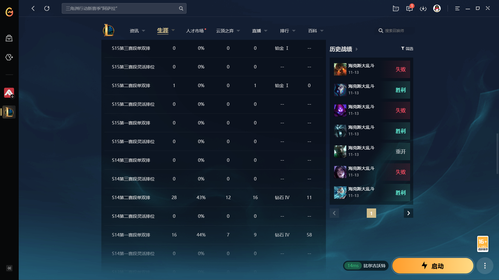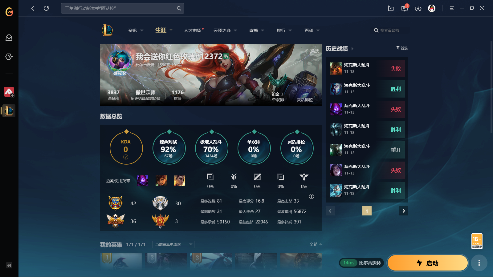 游戏区服:英雄联盟 / 网通 / 比尔吉沃特