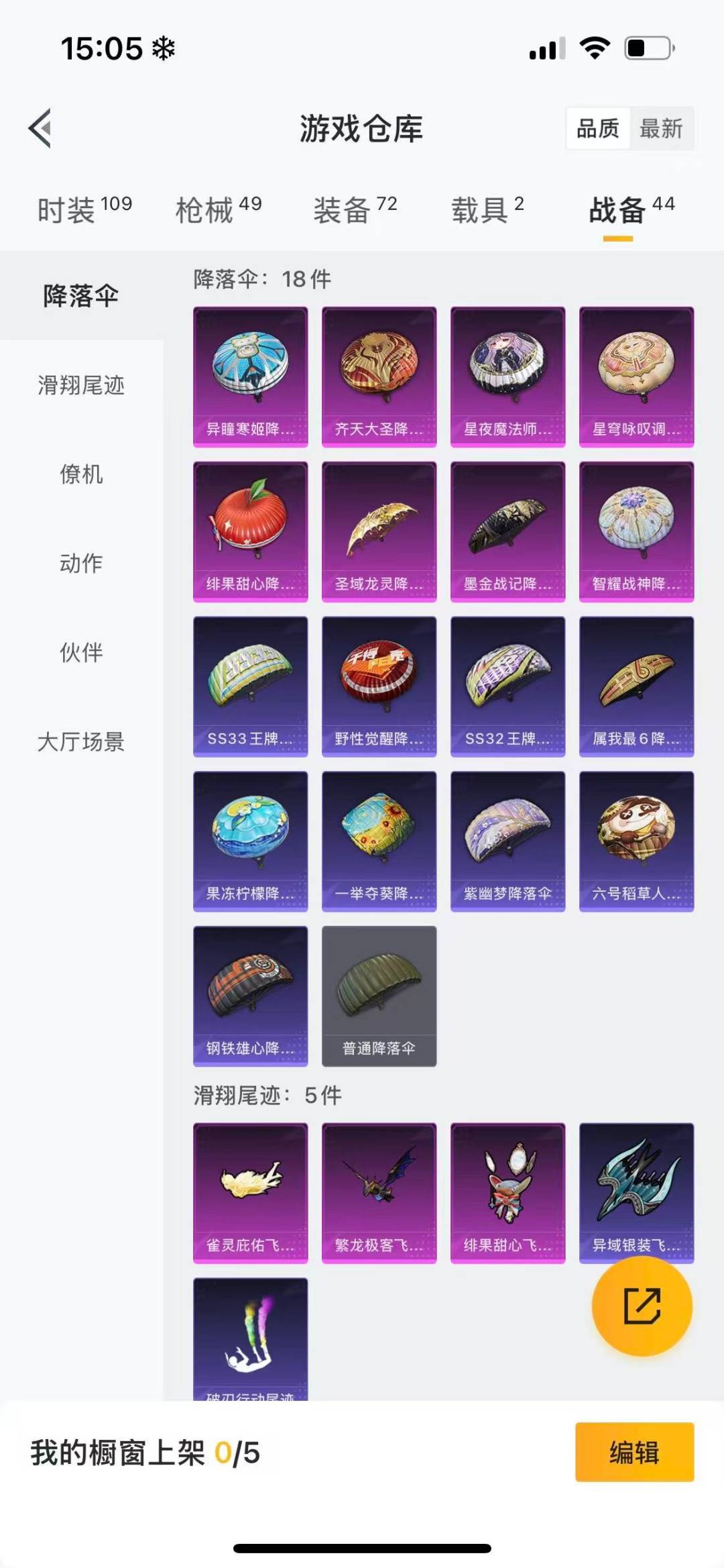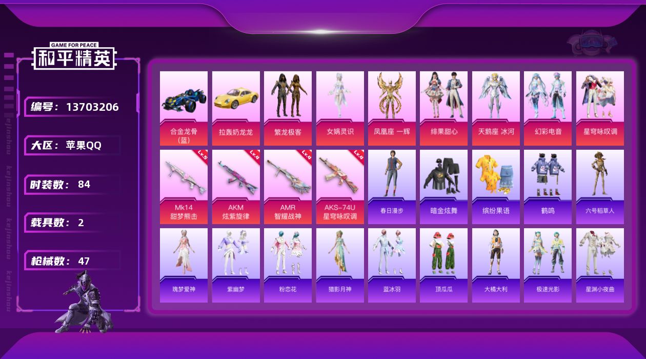 【4152】【可二次】【苹果QQ】合金龙骨蓝色 齐天大圣降落伞 AKM-炫紫旋律 星夜魔法师降落伞