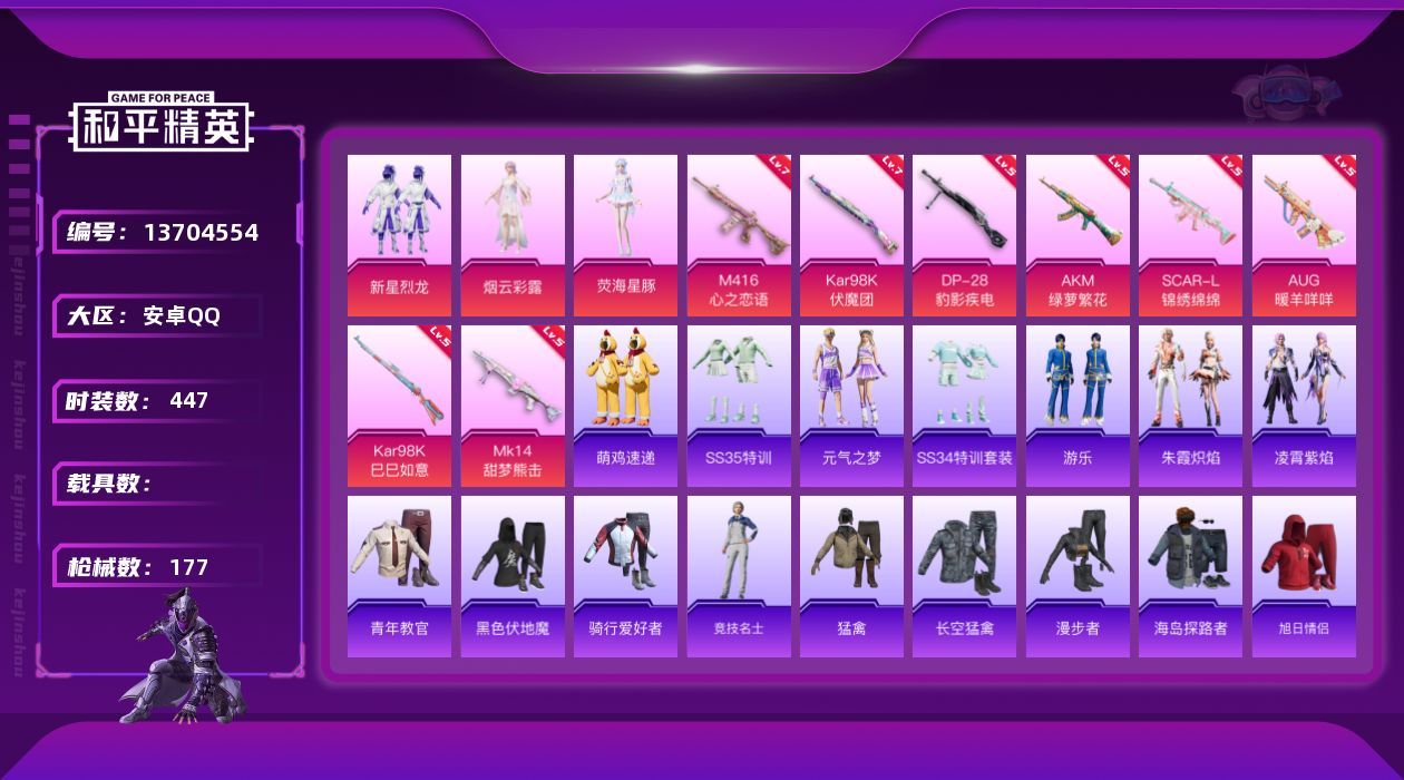 游戏区服:和平精英 / 安卓系统 / QQ账号