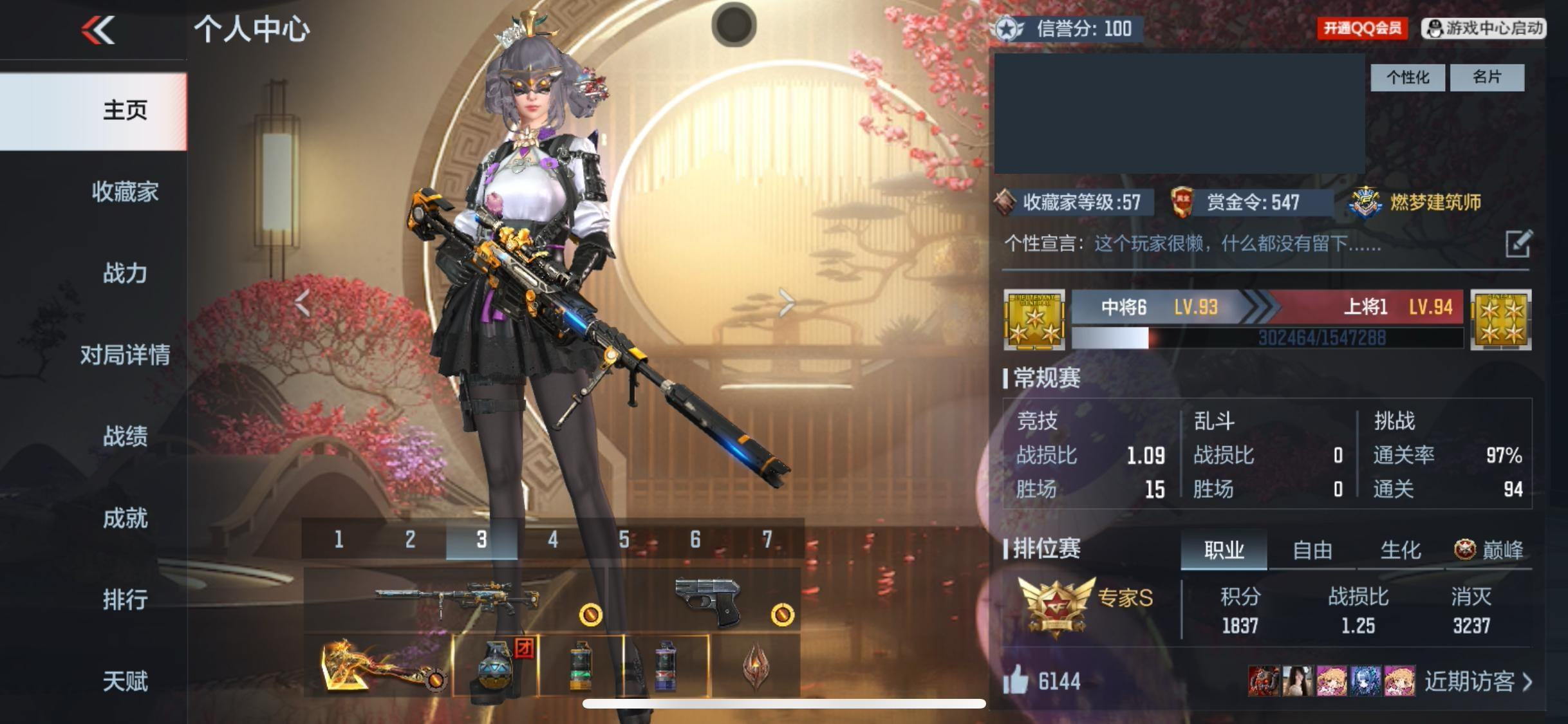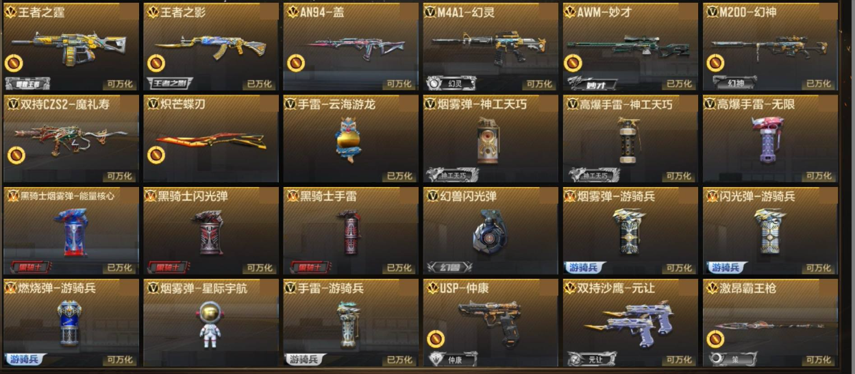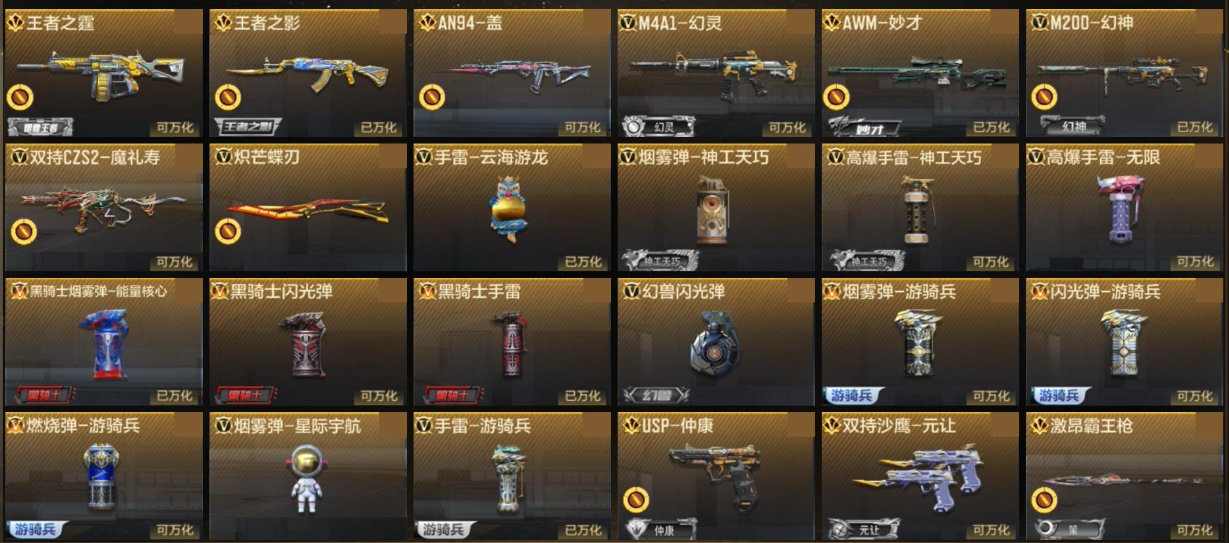 【68958】S304 苹果Q 2王者武器 妙才 盖 幻神 【游戏等级】 93 【信誉评分】 100 【贵族等级】 3 【收藏点数】 5743 【武器】 王者之霆, 王者之影, AN94-盖, M4A1-幻灵, AWM-妙才, M200-幻神, 武器-双持CZS2-魔礼寿, 武器-炽芒蝶刃, 武器-09式狙-天神*2, 武器-AK12-天启, 武器-AK47-木兰, 武器-AK47-破空冰刃,