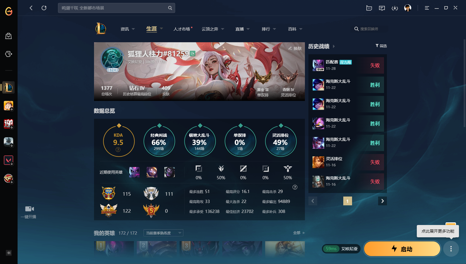 游戏区服:英雄联盟 / 电信 / 艾欧尼亚