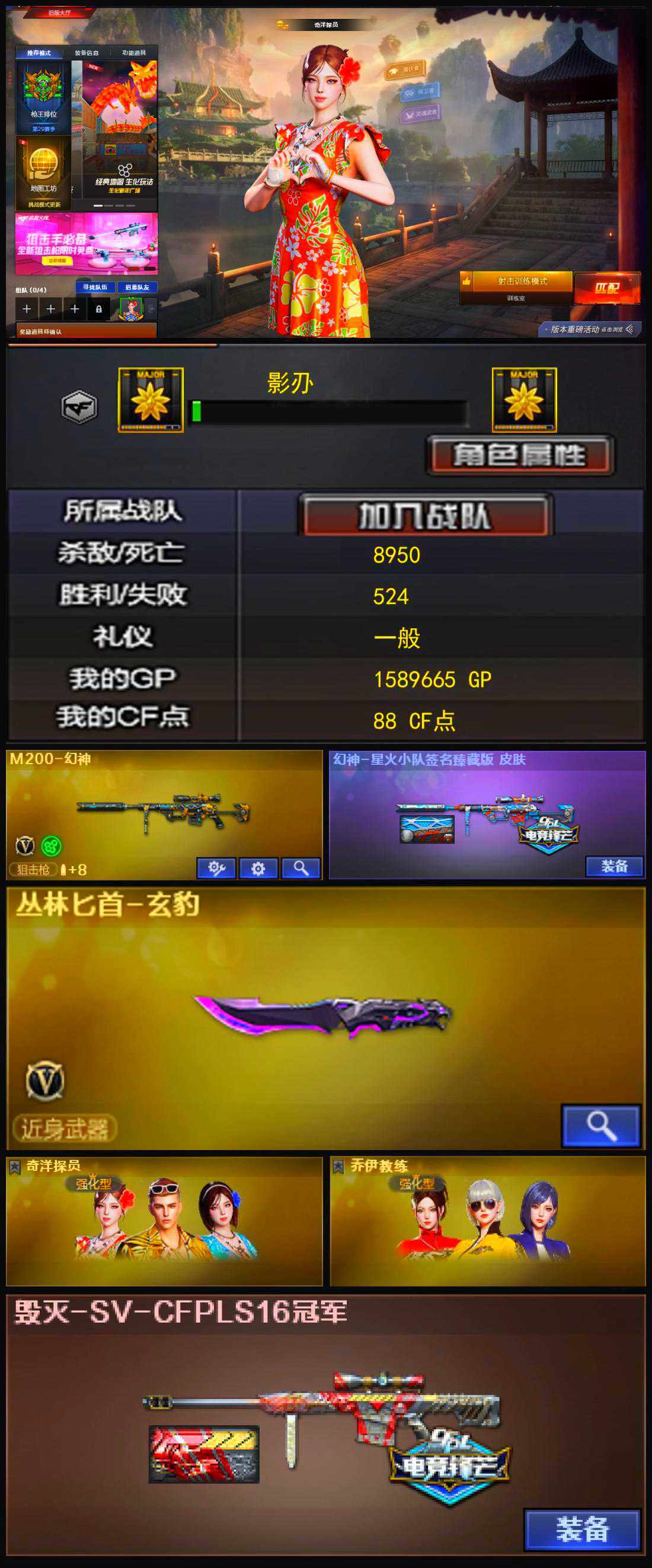 【75389】【75389】[14143724]【幻神1皮】【M200-幻神】【幻神-星火小队签名臻藏版 皮肤】【丛林匕首-玄豹】【奇洋探员】【乔伊教练】【毁