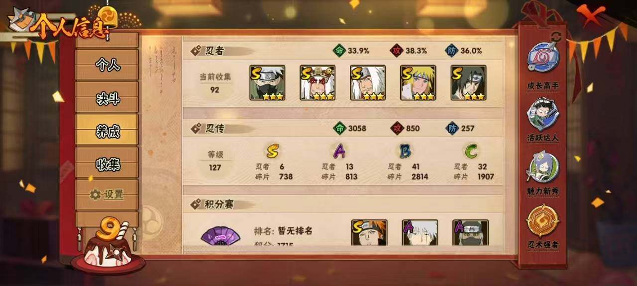 [10444937]【商品标题】:6S级忍者数-13A级忍者数 【S级忍者】:宇智波鼬「须佐能乎」(3星),旗木卡卡西「须佐能乎」(3星),自来也「舞之豪杰」(3星),自来也「传说中的三忍」(3星),波风水门(3星),佩恩「天道」(3星) 【A级忍者】:波风水门「青年」(2星),干柿鬼鲛(2星),迈特凯(2星),旗木卡卡西「幻之真容」(2星),...