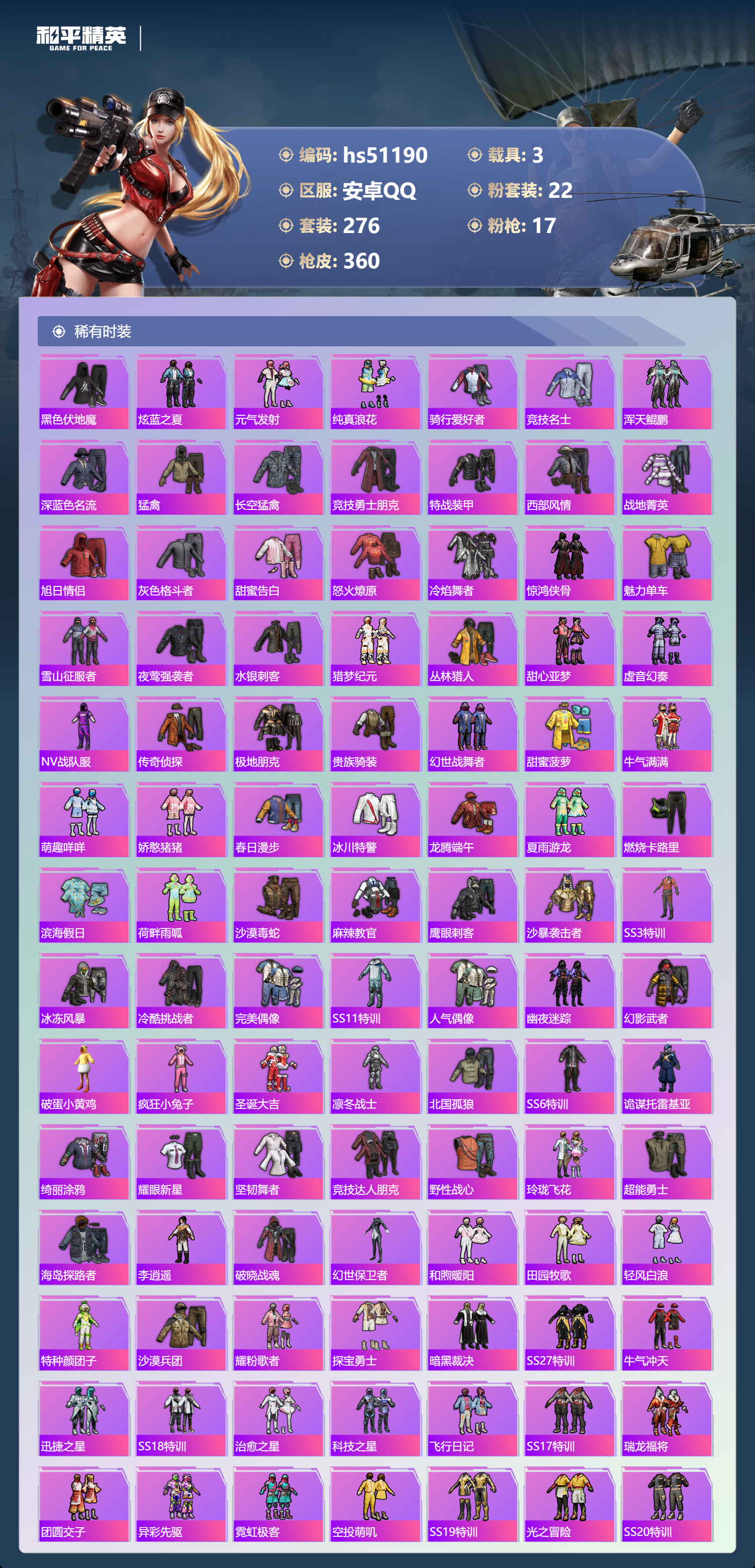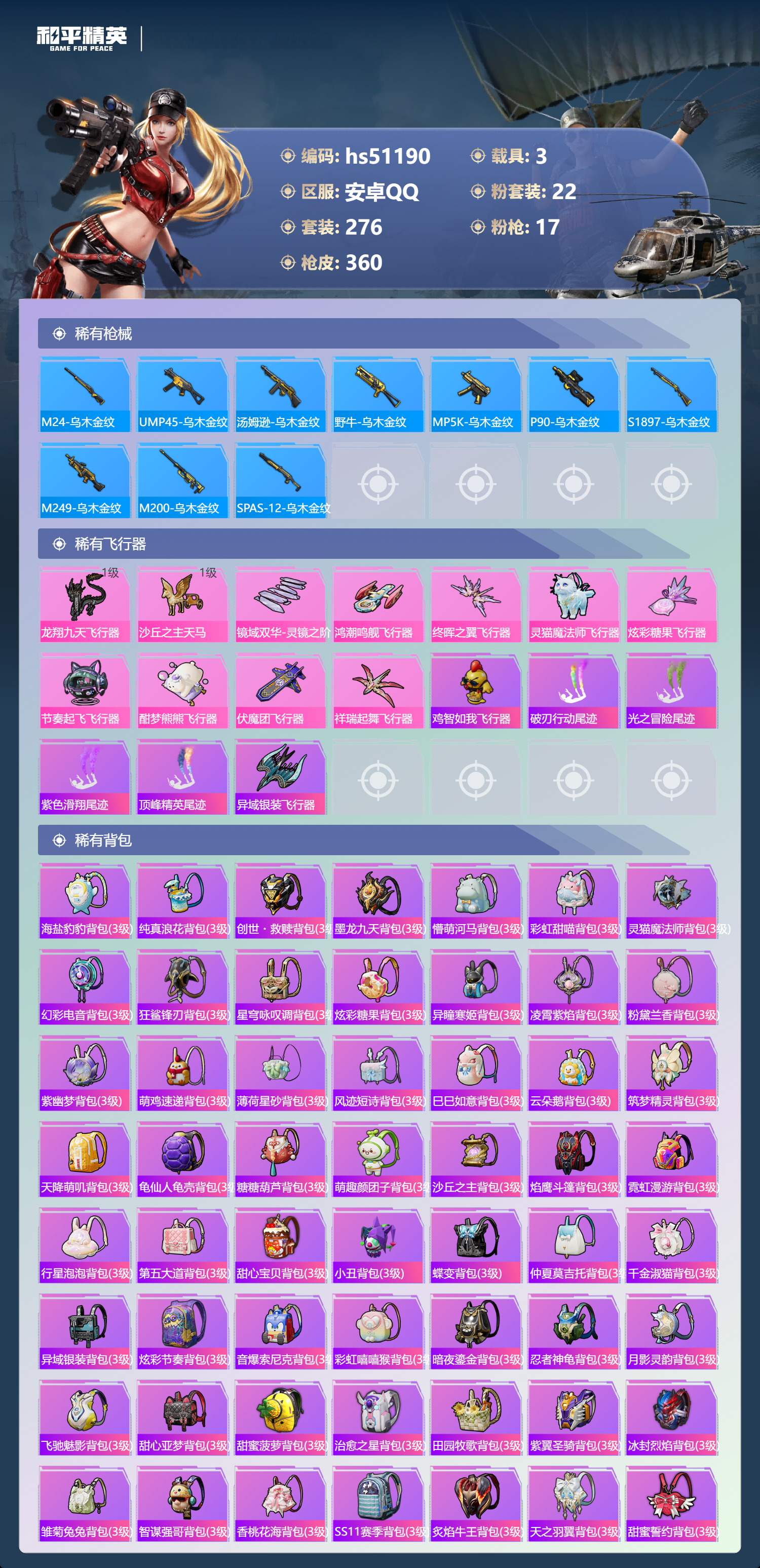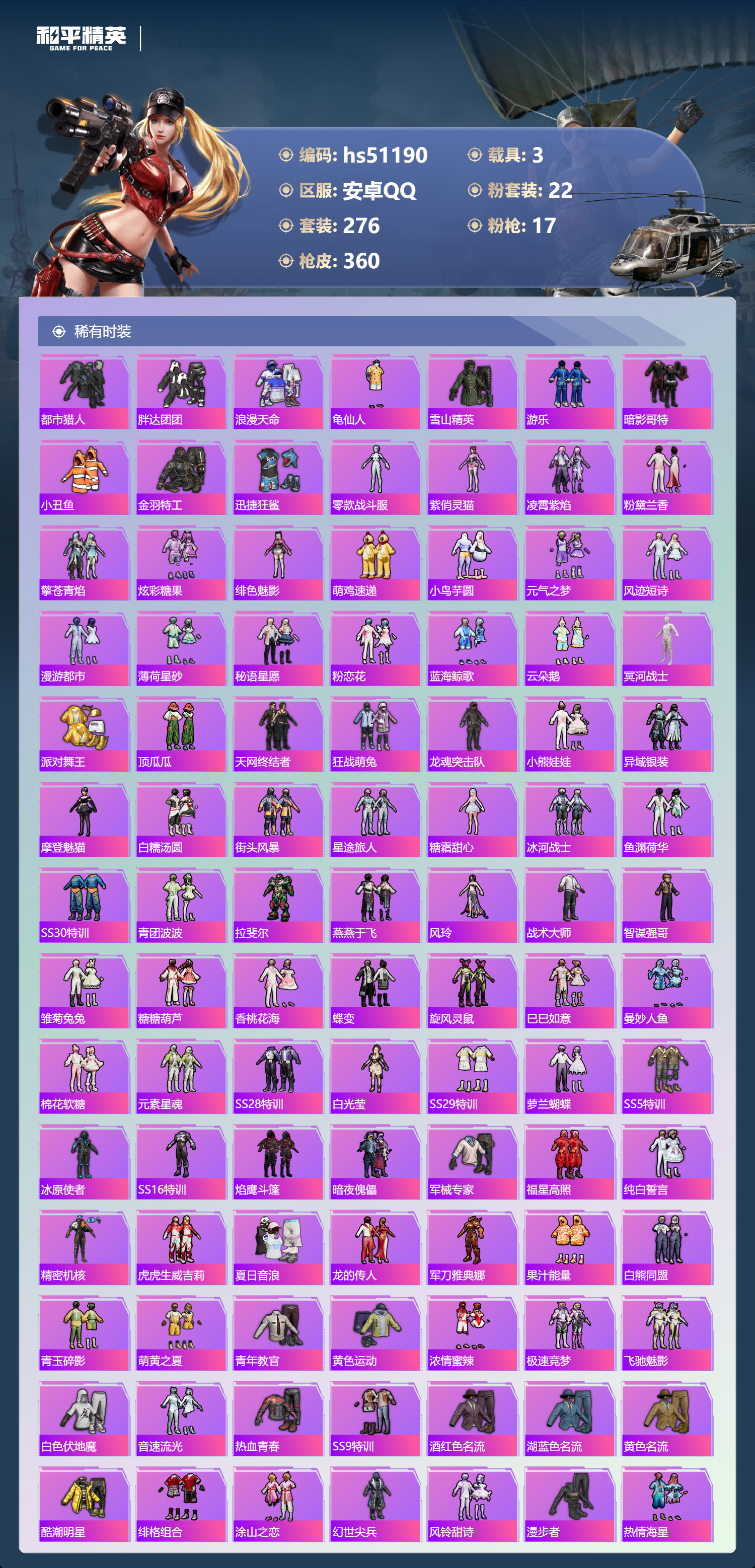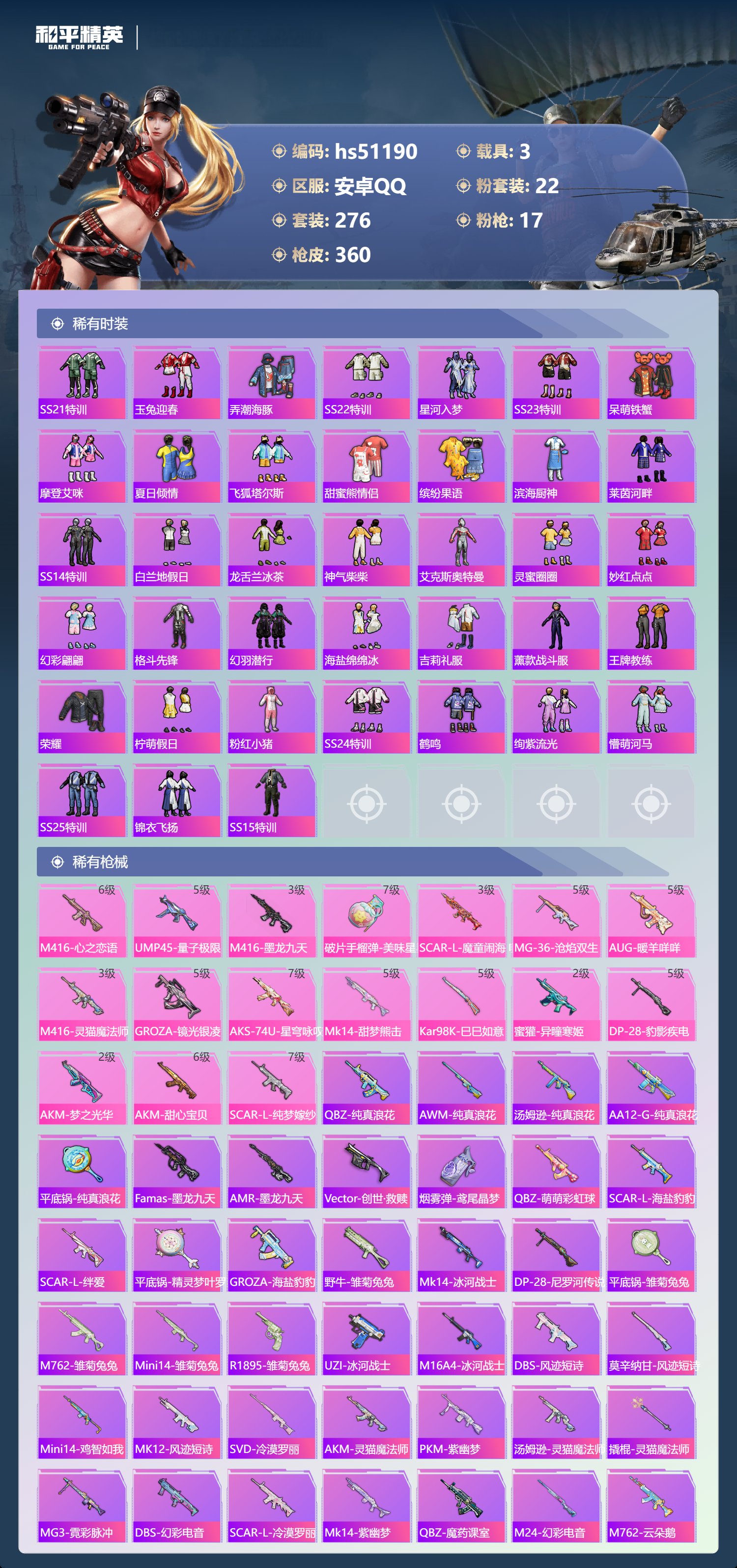 【145852】【不可二次】【安卓QQ】龟仙人 木乃伊 水银刺客 S686-奇异狩猎者 漫步者 都市猎人 炙焰红王 M762-奇异狩猎者 放客神游 UMP45-量子极限 M416-心之恋语 缤纷油彩 碧影闪光 魔童闹海-哪吒 瑞龙福将 智能音符 蝶舞迷情 浪漫天命 AKM-甜心宝贝 胖达团团 纯白誓言 团圆交子 星之信仰 伏魔团飞行器 怪诞乔克 迅捷狂鲨 M762-瑞龙福将 甜心巧克力 龙翔九天
