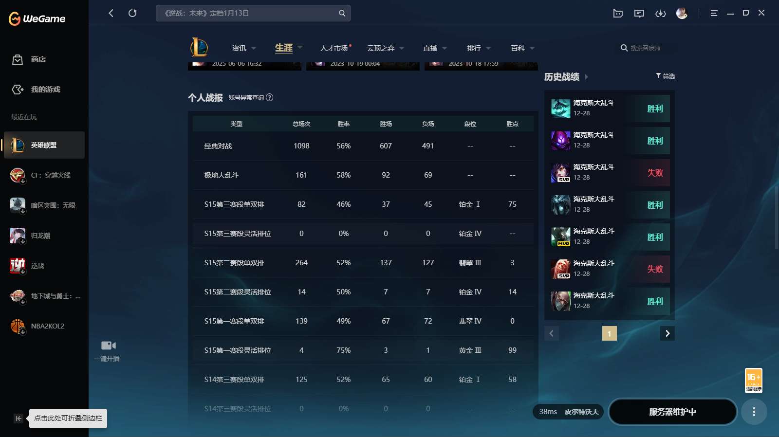 游戏区服:英雄联盟 / 电信 / 皮尔特沃夫