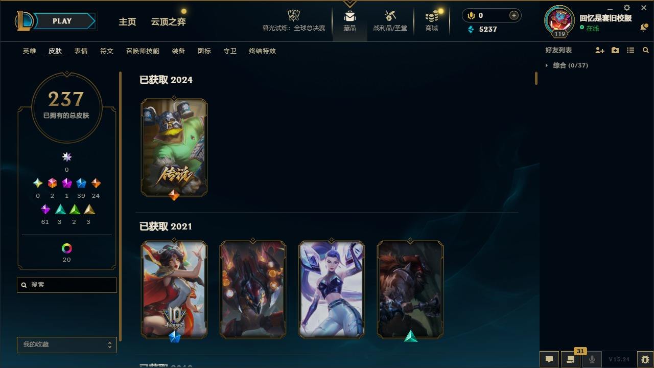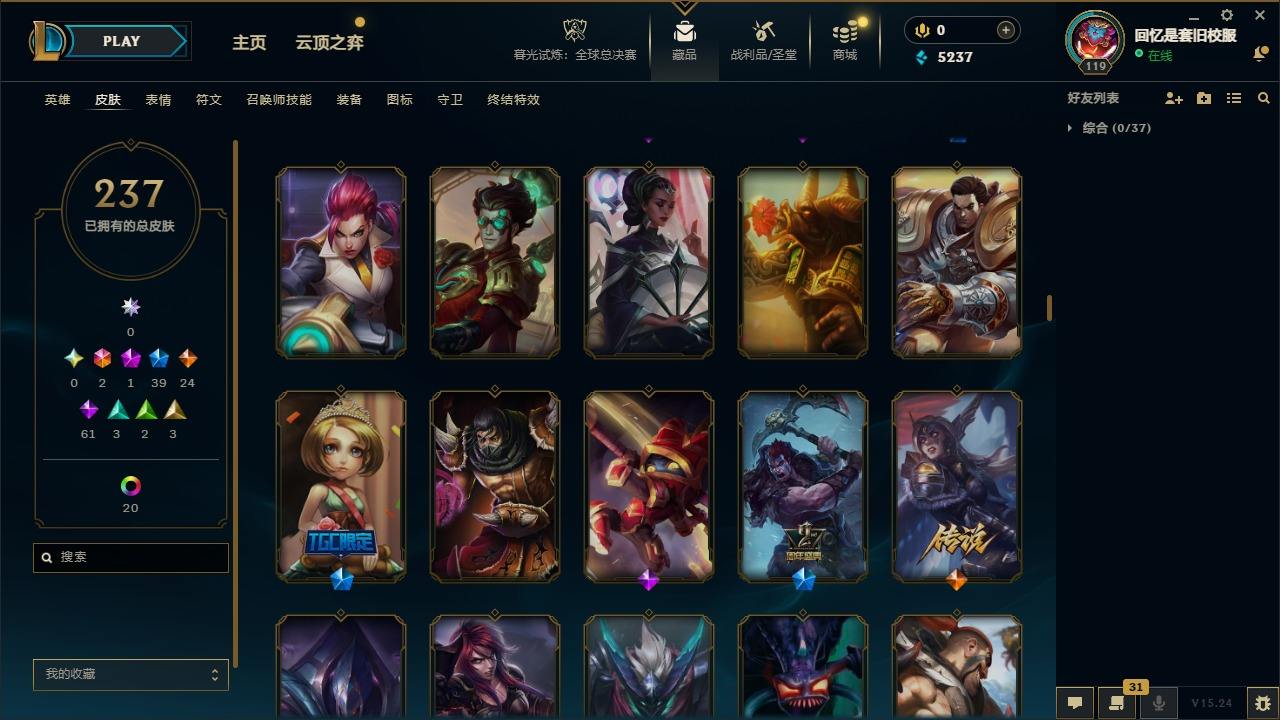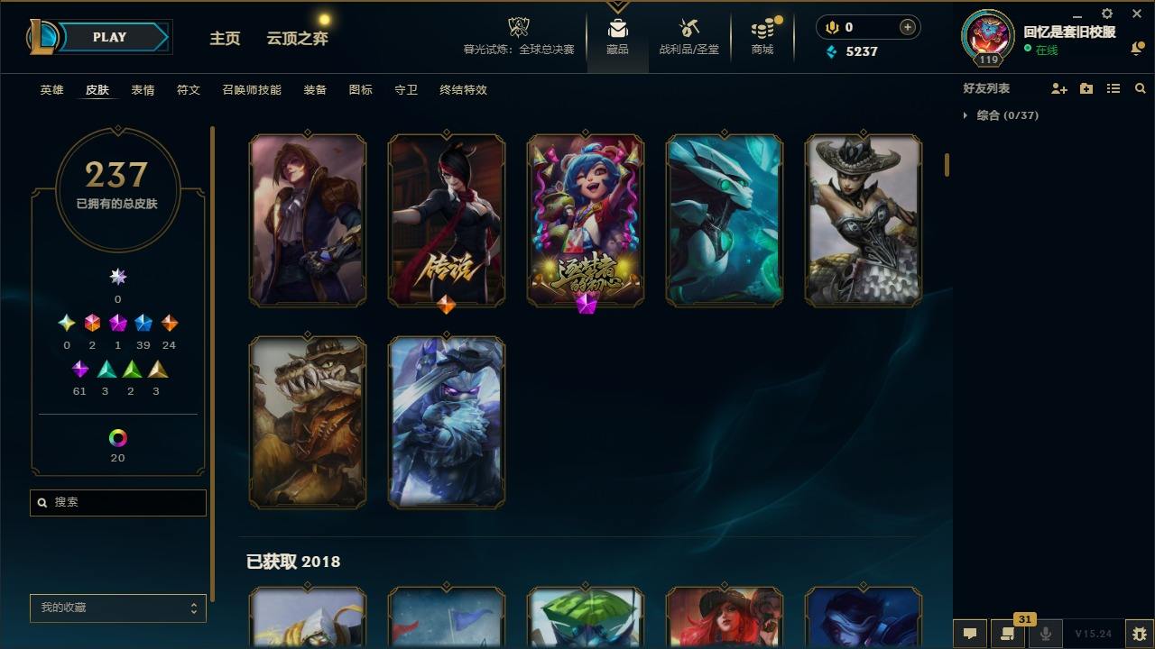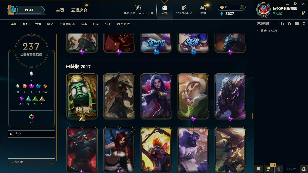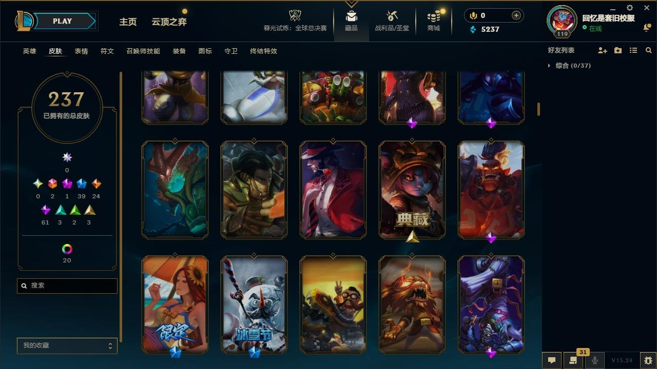 【267437】[15371101]2终极 1神话 39限定 24传说 61史诗 237皮肤 20炫彩 92英雄 可二次 可修改实名 【限定】舞会公主 安妮【情人节限定】甜心之羽 霞【赛季限定皮】胜利之树 茂凯,胜利枪神 格雷福斯【冠军限定系列】S1FNC 迦娜,S2 暗杀星 蒙多,S2 暗杀星 努努,S3 SKT T1 劫,S4 SSW 图奇,S5 SKT T1 阿兹尔【冰雪节限定】冬季仙境