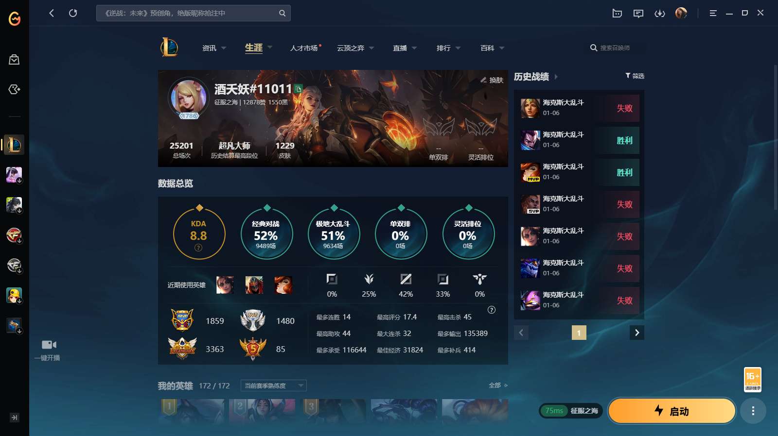 游戏区服:英雄联盟 / 电信 / 征服之海