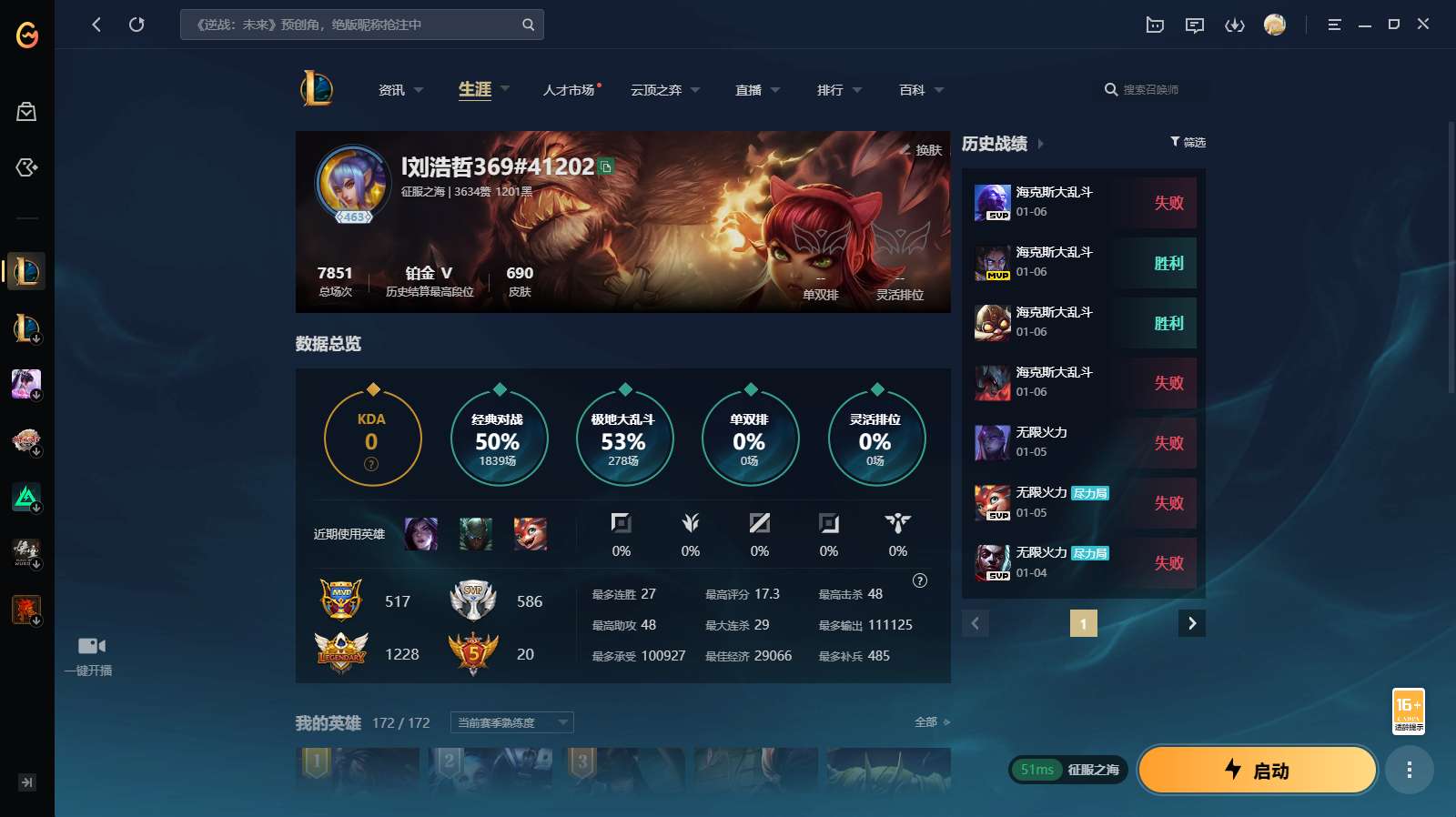 游戏区服:英雄联盟 / 电信 / 征服之海