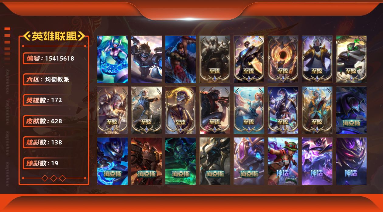 【276197】[15415618]t33877【均衡教派】白龙瞎 628皮肤 138炫彩 19臻彩 33神话/117限定/73传说/172英雄 账号等级:484 云顶神话:2【重要头像】爱意绵绵 爱情之歌 心型钥匙 觅心游侠卢锡安 小斗 战斗学院伊泽瑞尔神话炫彩 暗星绝杀头 暗星绝杀烬头 【重要皮肤】天龙之子伊泽瑞尔至臻 心之钢永恩至臻 海之歌萨勒芬妮至臻 西部魔影猎天使