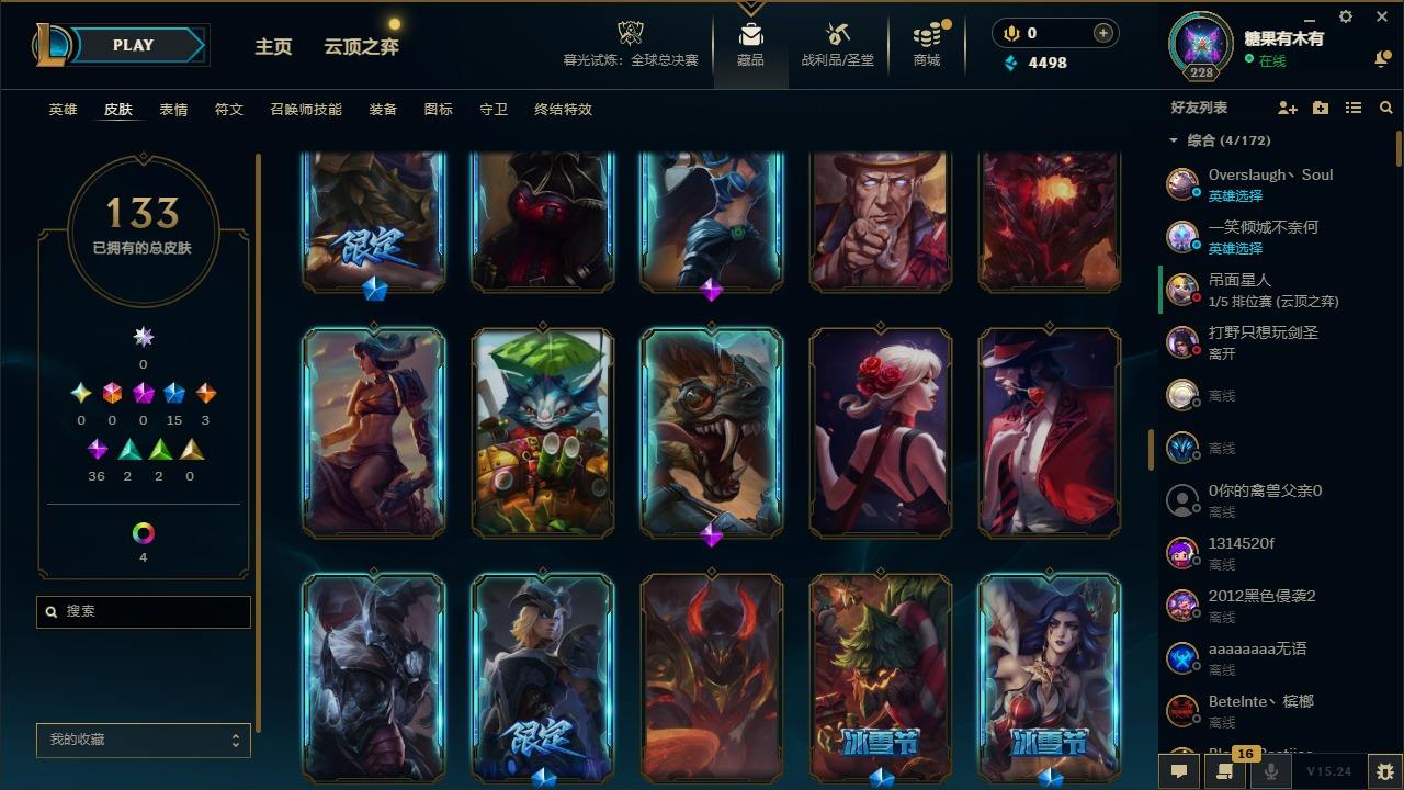 【277232】[15420661]15限定 3传说 36史诗 133皮肤 4炫彩 160英雄 可二次 可修改实名 【赛季限定皮】胜利枪神 格雷福斯 【冰雪节限定】圣诞狂欢 努努和威朗普,圣诞玩偶 波比,圣诞驯鹿 克格莫,喜庆之树 茂凯,幸福女神 乐芙兰,雪默丁格 【万圣节限定】魅惑女巫 奈德丽 【周年】1周年 安妮 【其他限定/神话皮】外星装甲 库奇,防暴天使 凯尔,暗影 沃里克,波比的巧克