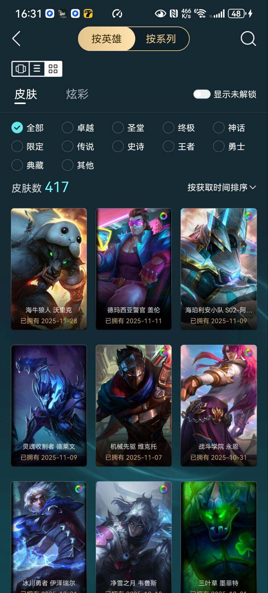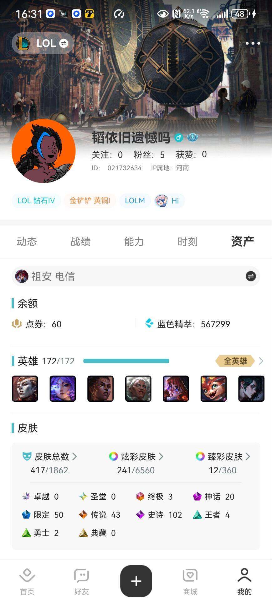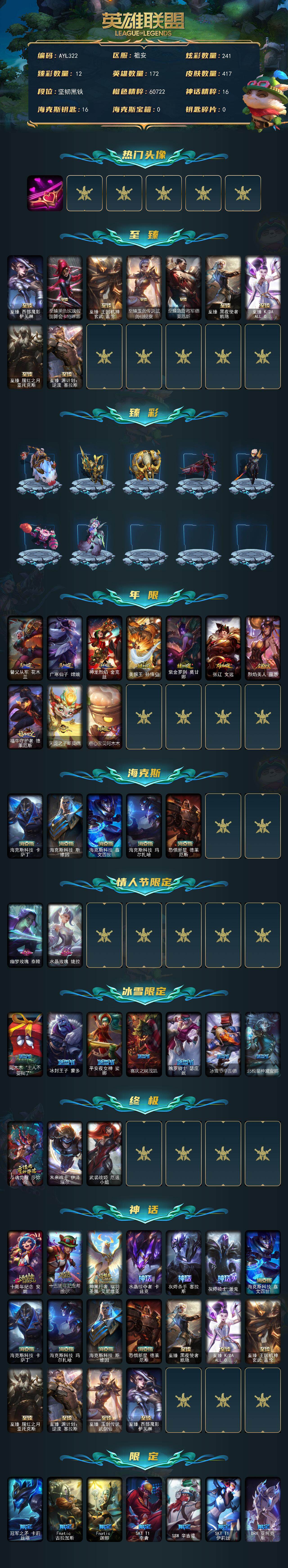 【278250】[15426918]可二次【特价出售/店主推荐】未定级段位-172英雄-417皮肤-241炫彩-3终极-20神话-50限定-43传说-102史诗【热门头像】:爱情之歌头像【至臻皮肤】:至臻西部魔影伊芙琳,至臻黑色玫瑰假面舞会卡特琳娜,至臻王国机神玄武盖伦,至臻玉剑传说武剑仙锐雯,至臻凯旋将军德莱厄斯,至臻黑夜使者凯隐,至臻KDAALLOUT卡莎,至臻腥红之月亚托克斯,至臻源计划逆