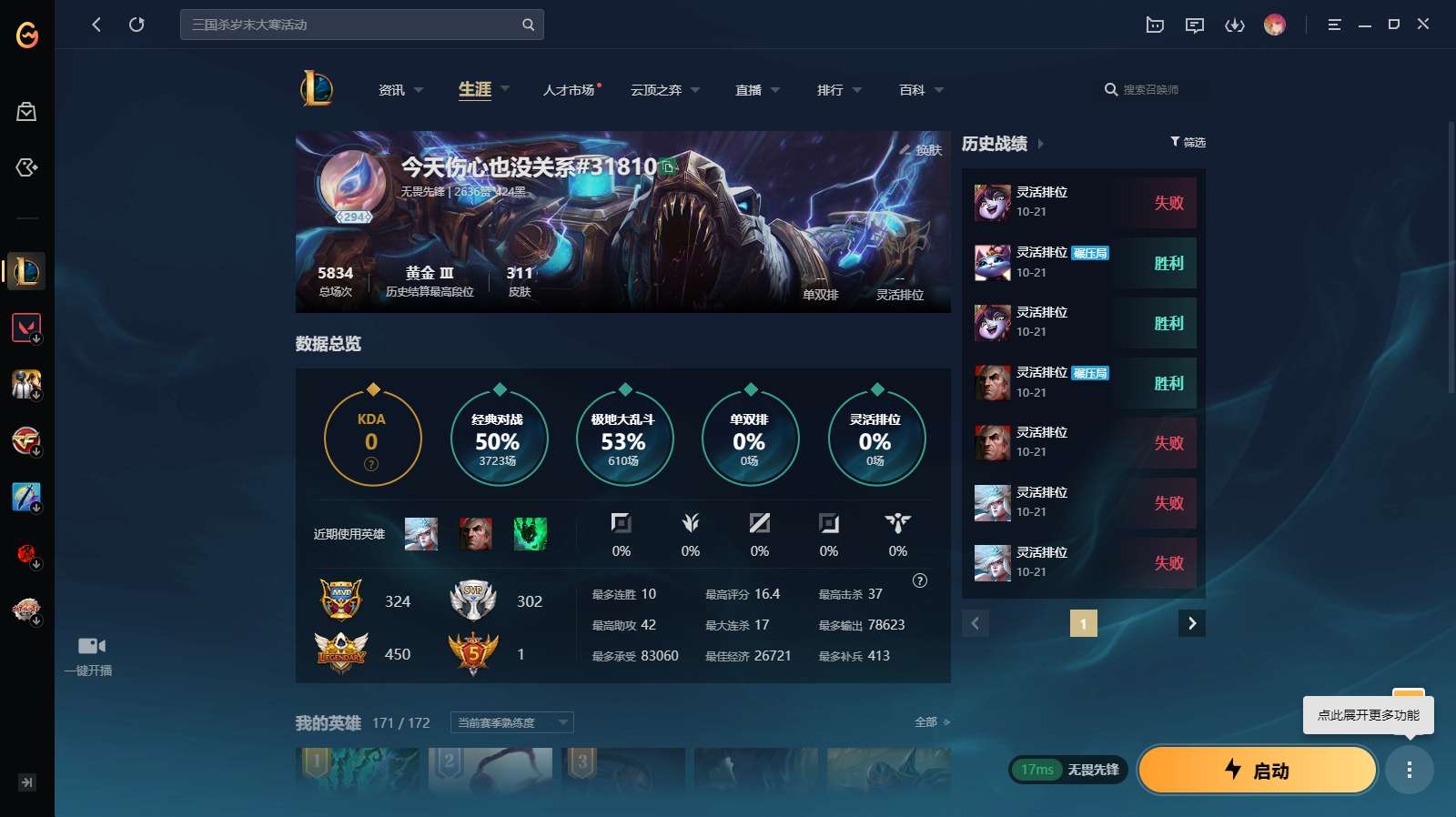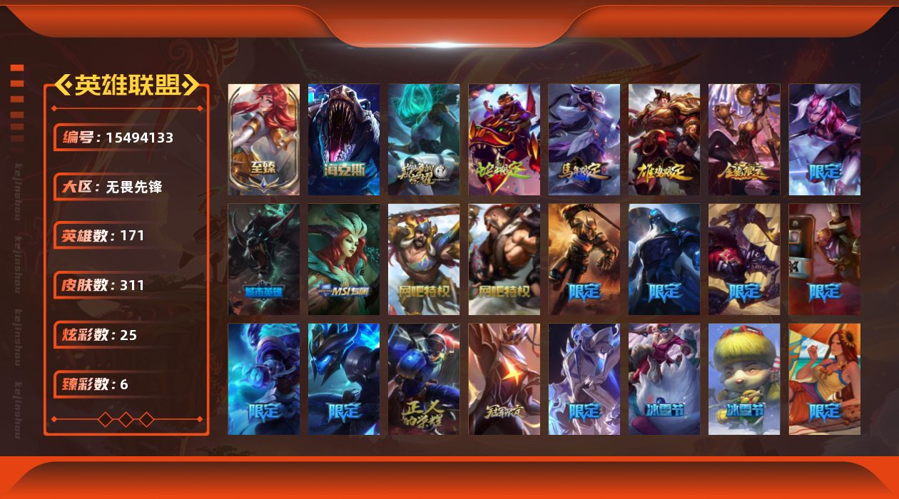 游戏区服:英雄联盟 / 网通 / 无畏先锋