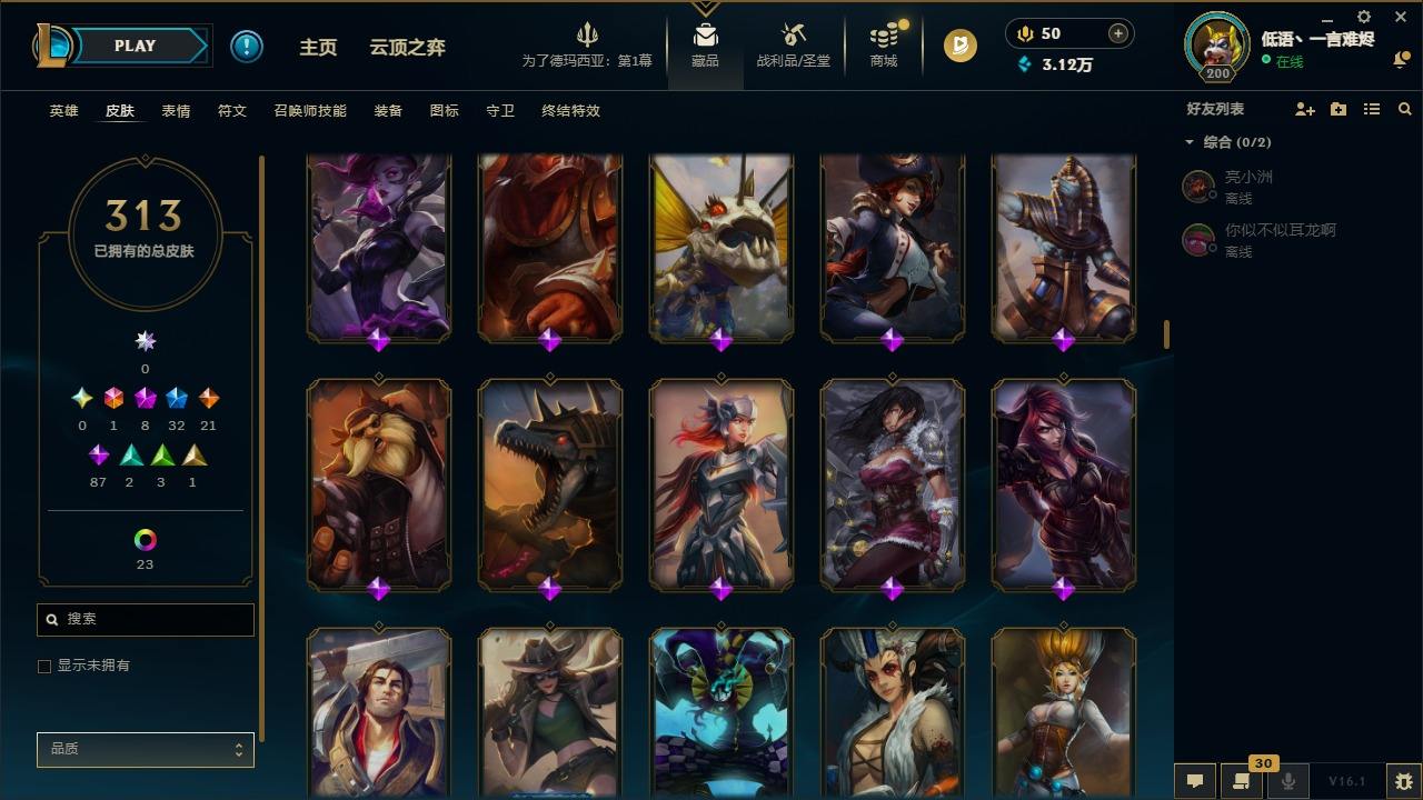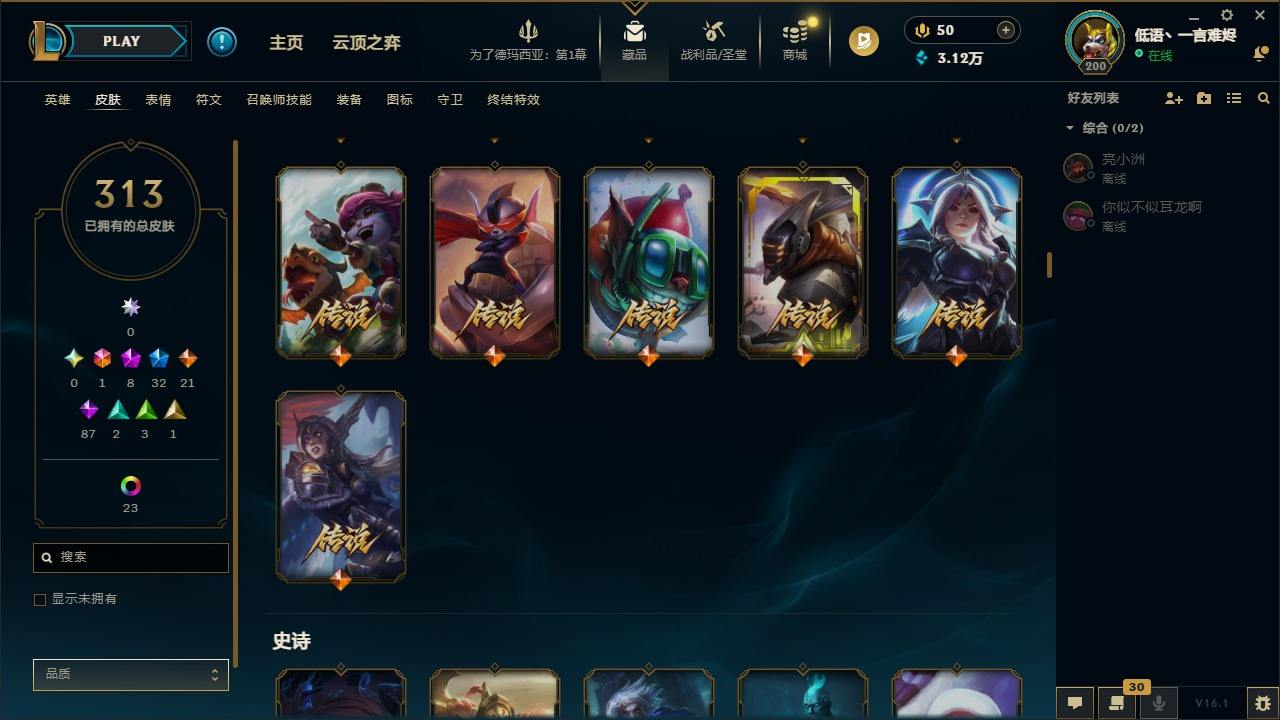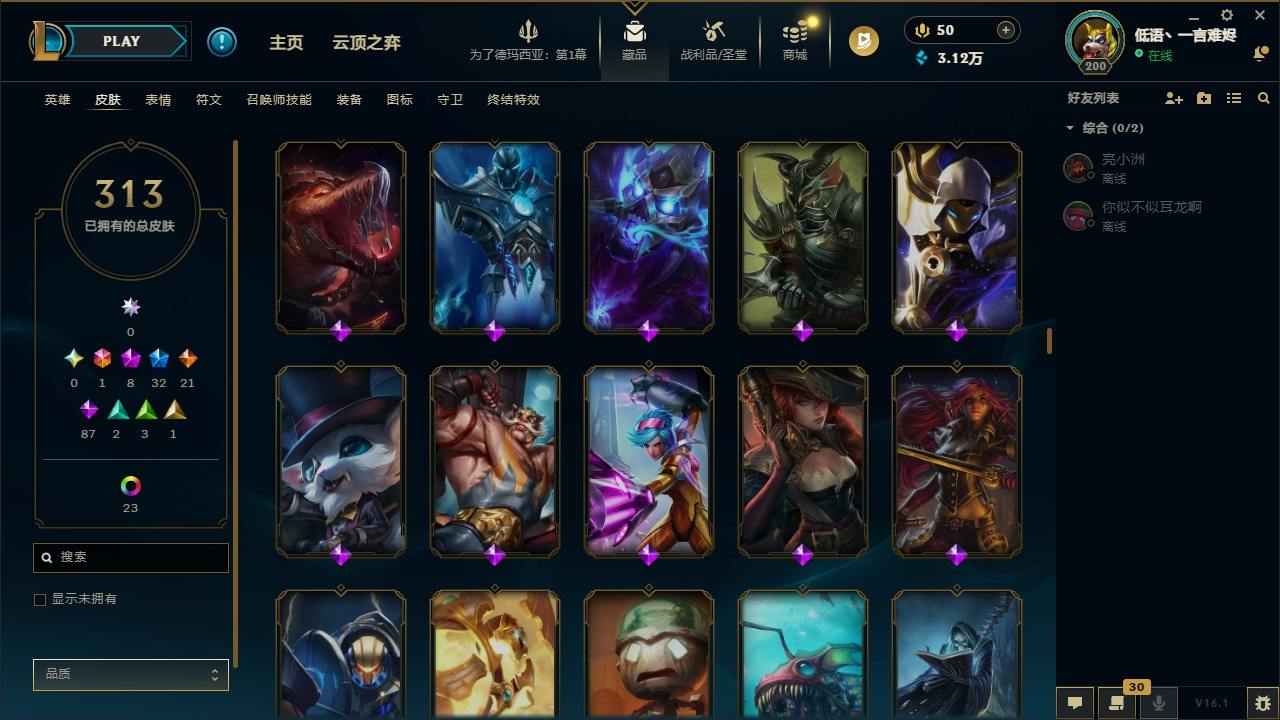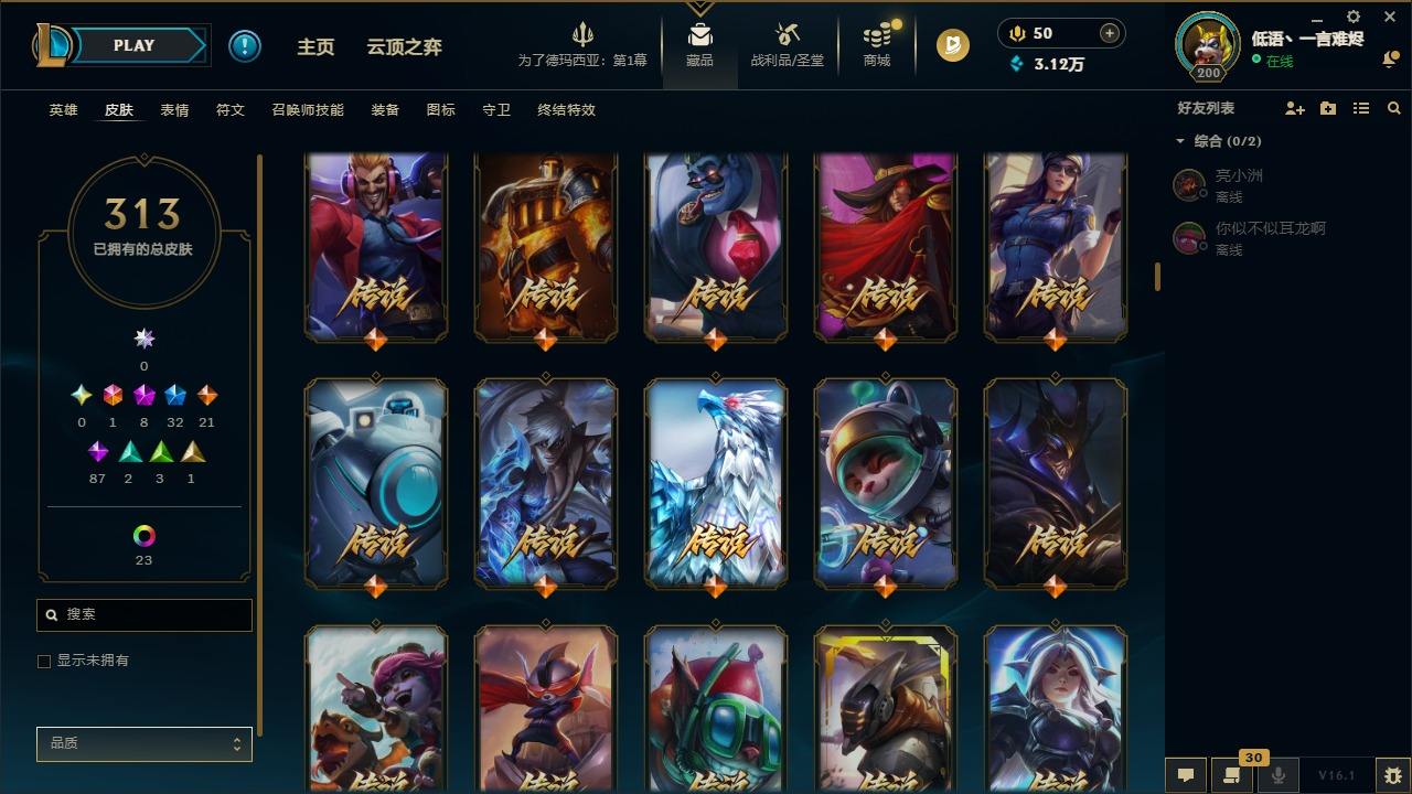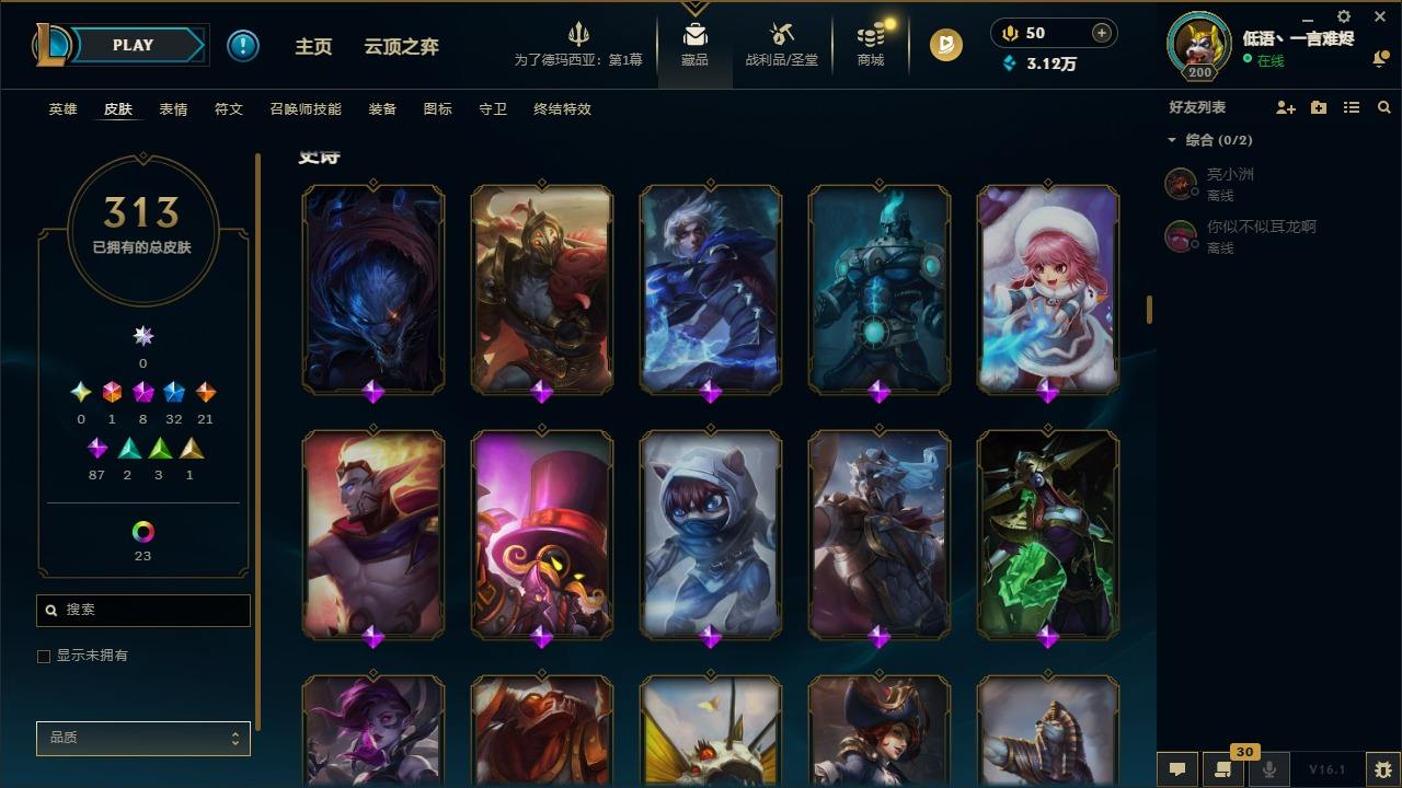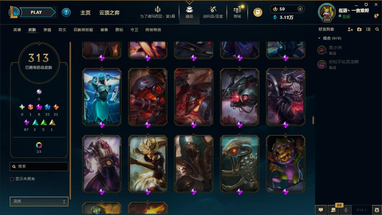 【292200】[15498146]1终极 8神话 32限定 21传说 87史诗 313皮肤 58炫彩 135英雄 可二次 可修改实名 【至臻】至臻 K/DA 阿卡丽,至臻 K/DA 卡莎,至臻 真实伤害 亚索,至臻 灵能特工 伊泽瑞尔,至臻 福牛守护者 菲奥娜【海克斯】海克斯 崔丝塔娜,海克斯 吉格斯【限定】穿星魔锋 赵信【情人节限定】甜心之翎 洛【冠军限定系列】S1FNC 卡尔萨斯,S2 暗