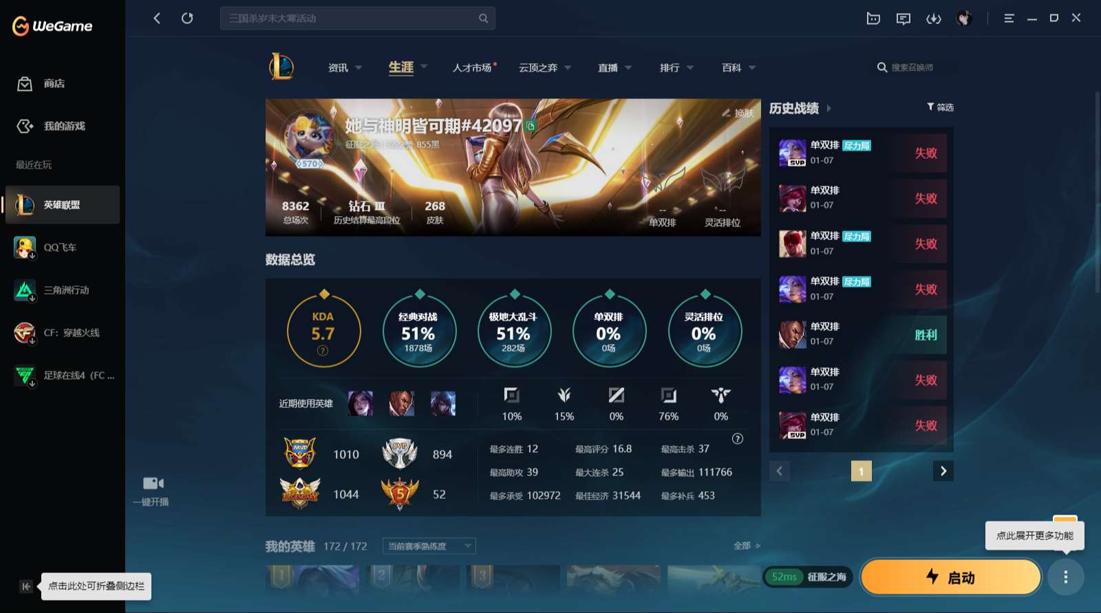 游戏区服:英雄联盟 / 电信 / 征服之海