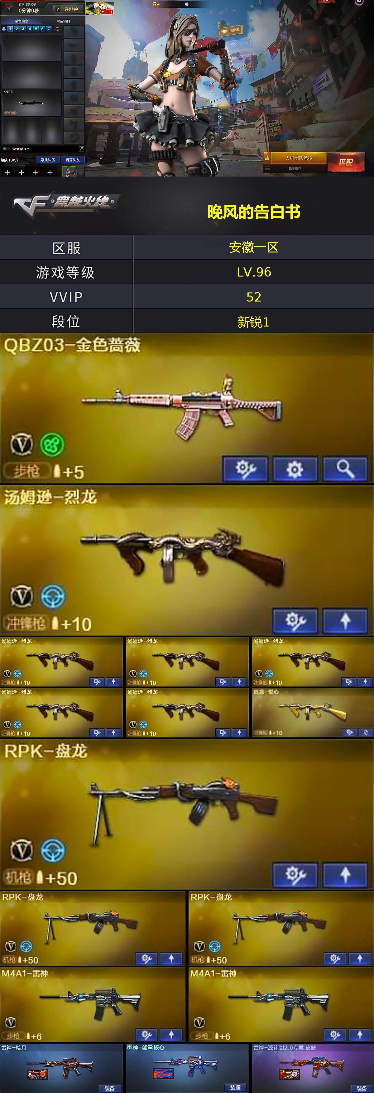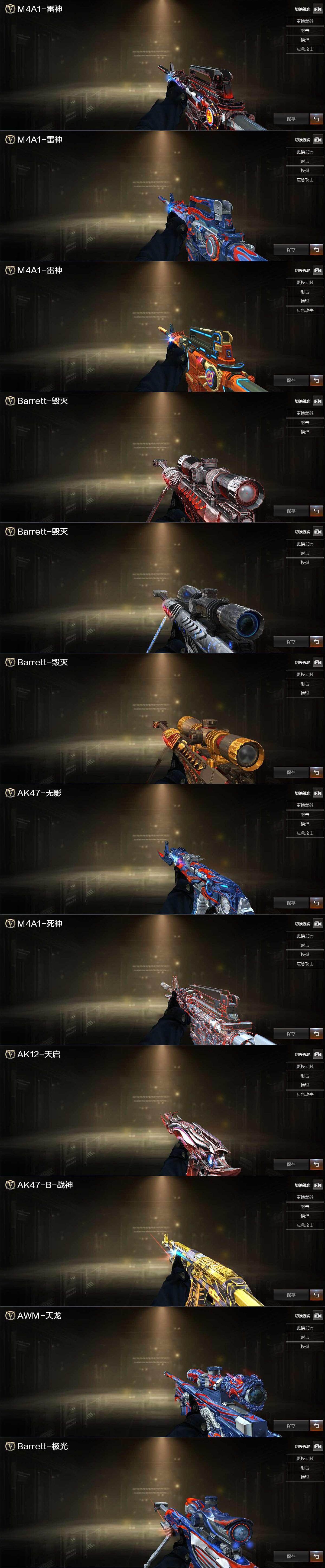 【热门武器】:QBZ03-金色蔷薇,死亡之眼,汤姆逊-烈龙*6,RPK-盘龙*3,加特林-炼