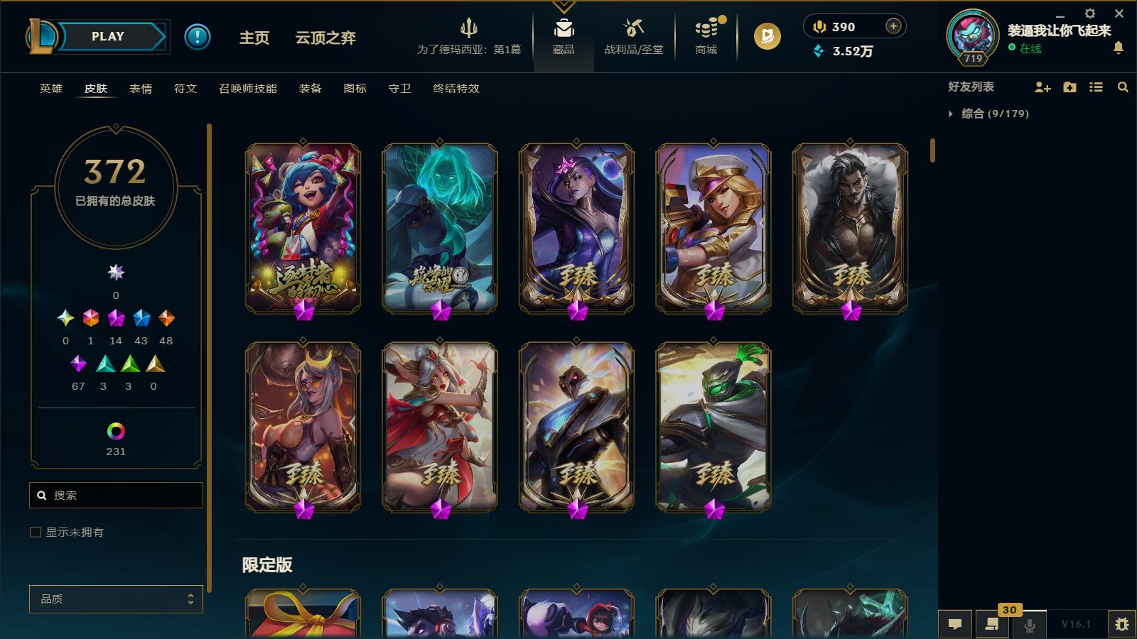 【297960】[15530271]玉剑男刀!E12331.暗影岛-372皮1终结14神话43限定231炫彩17臻彩