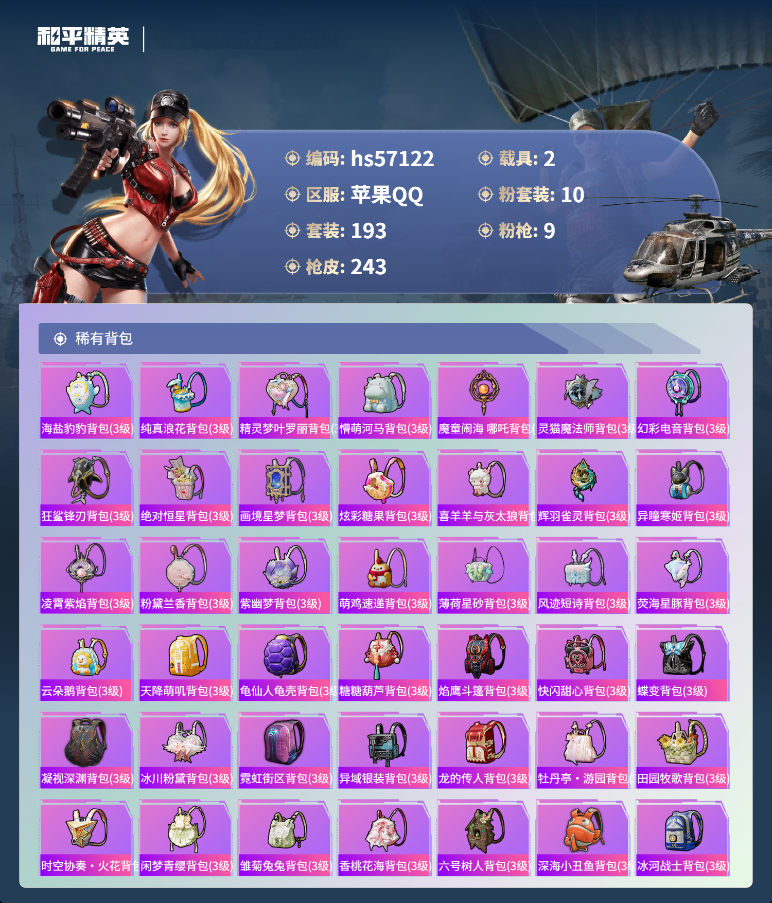 游戏区服:和平精英 / 苹果系统 / QQ帐号