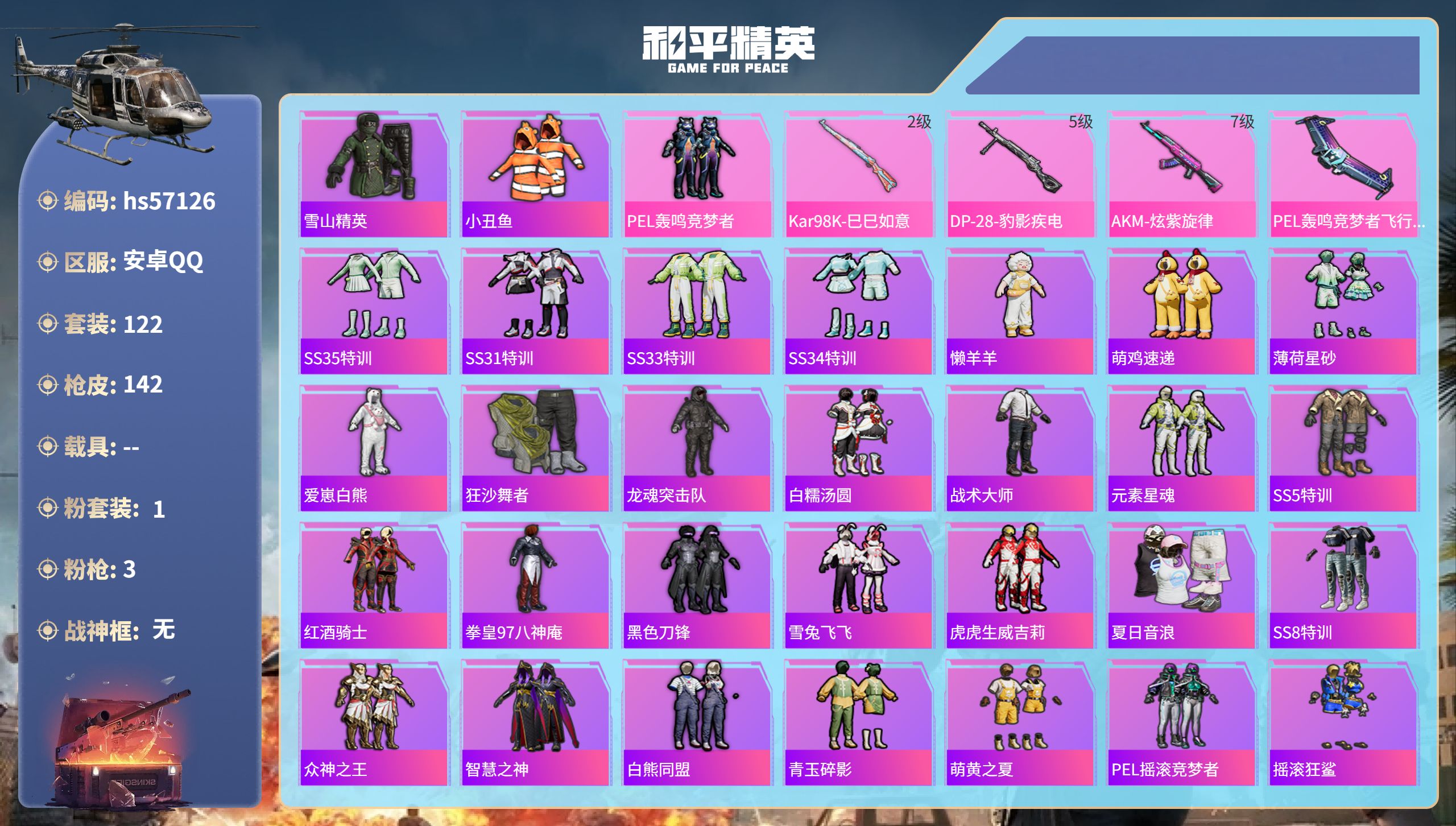 游戏区服:和平精英 / 安卓系统 / QQ账号