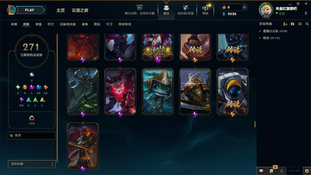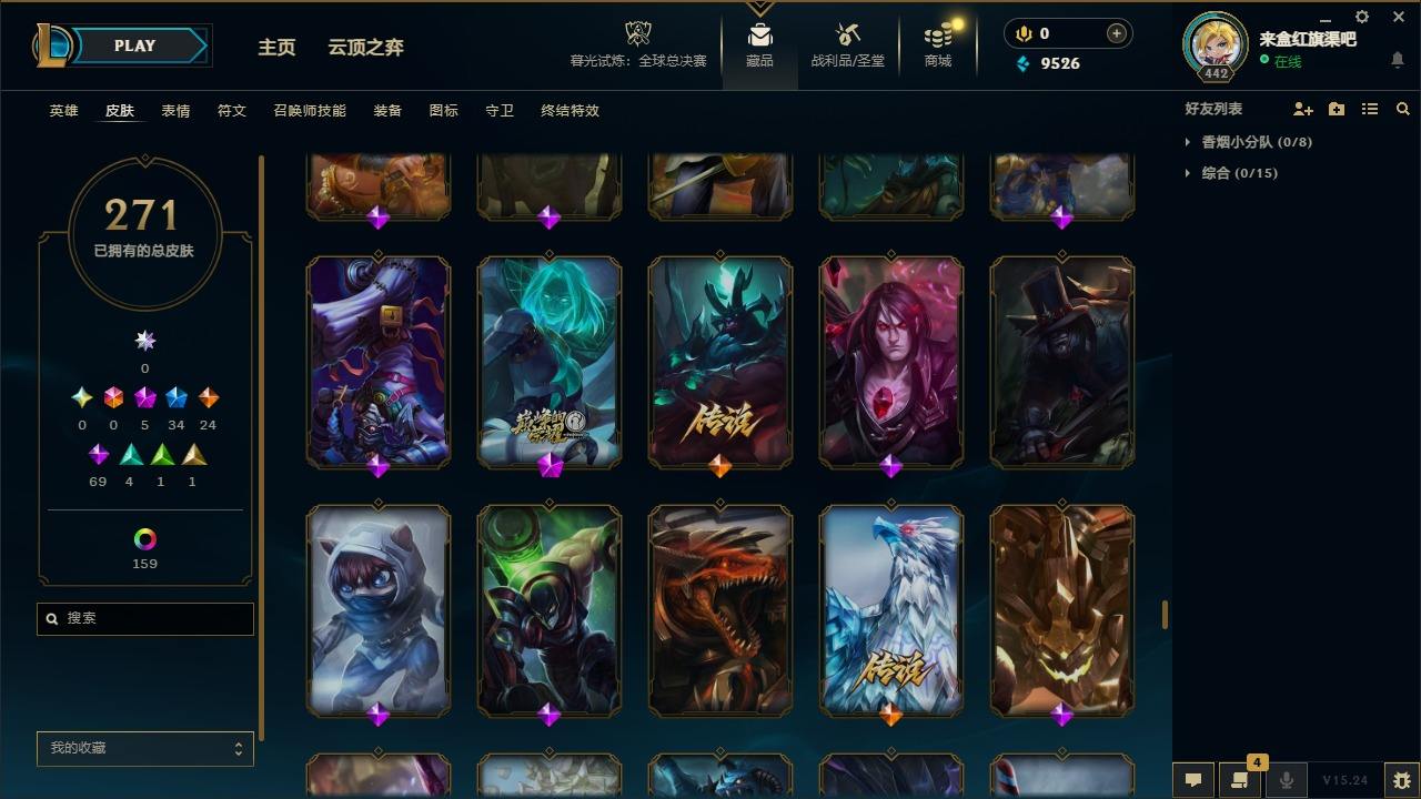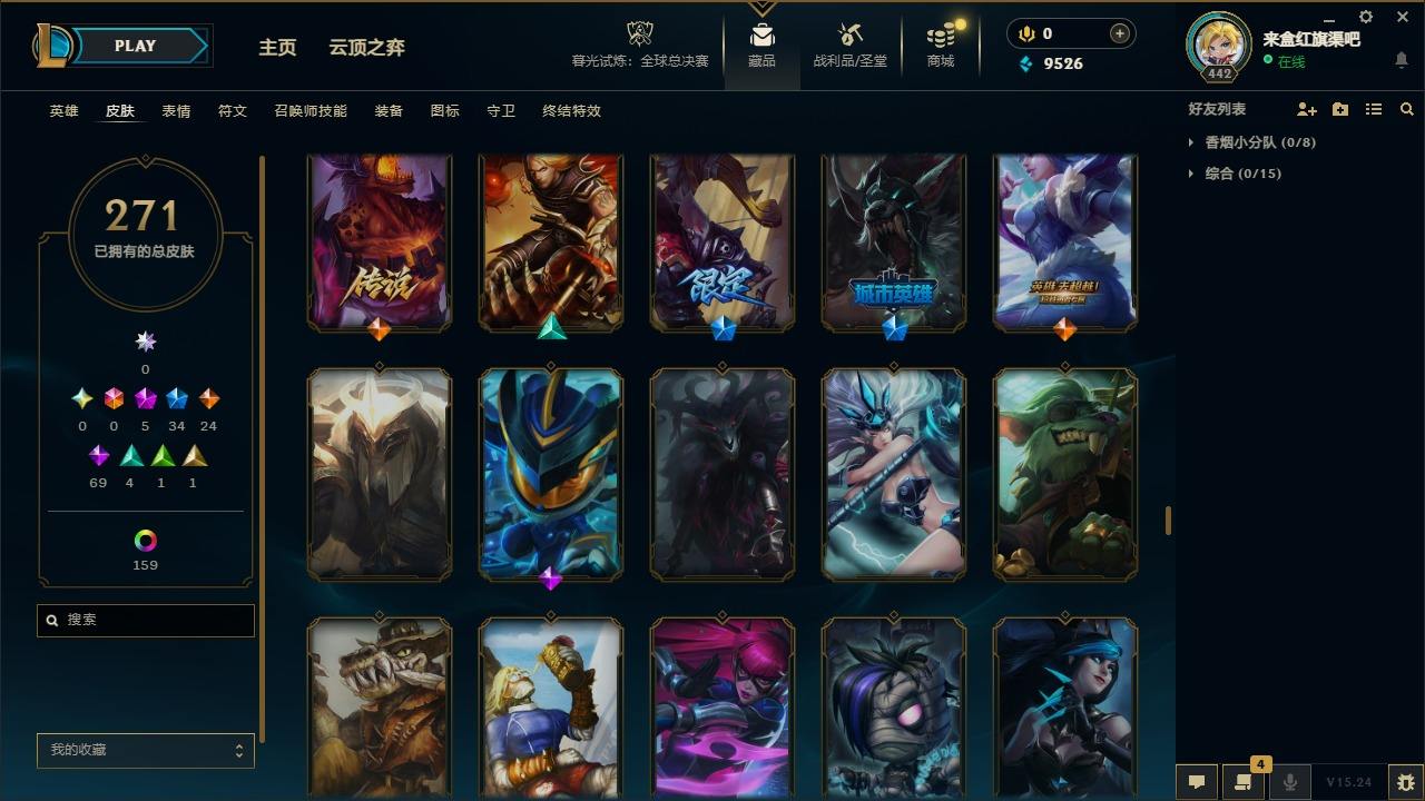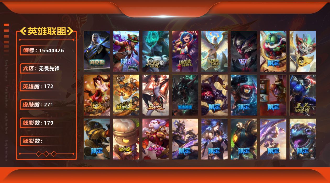 【300466】[15544426]5神话 34限定 24传说 69史诗 271皮肤 179炫彩 172英雄 可二次 可修改实名 【海克斯】:海克斯 斯维因【情人节限定】:觅心魔灵 奥利安娜【赛季限定皮】:胜利凤凰 艾尼维亚,胜利剑圣 易,胜利女神 娑娜,胜利巨口 克格莫,胜利机器人 布里茨【冠军限定系列】:S2 暗杀星 蒙多,S4 SSW 雷恩加尔,S5 SKT T1 瑞兹,S11 EDG 格