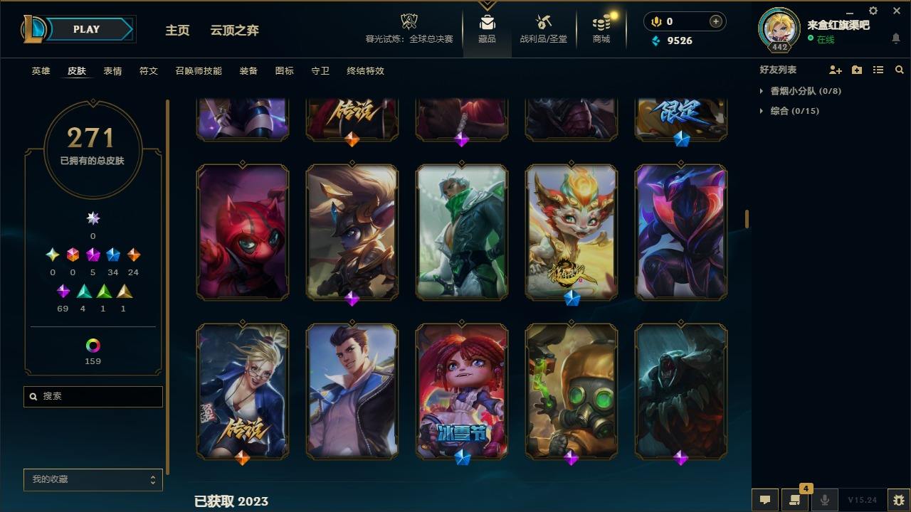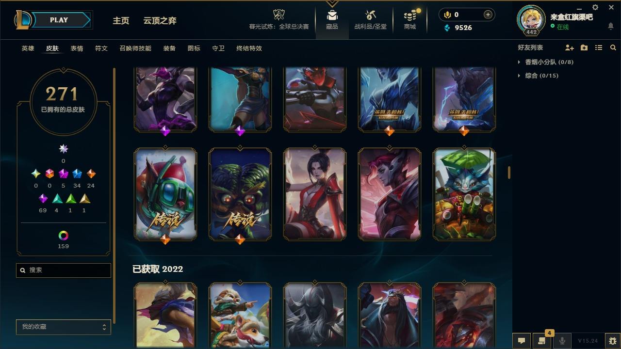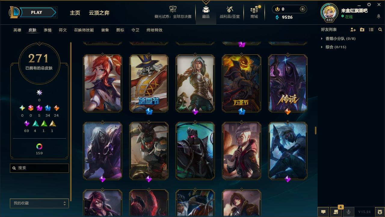 【300466】[15544426]5神话 34限定 24传说 69史诗 271皮肤 179炫彩 172英雄 可二次 可修改实名 【海克斯】:海克斯 斯维因【情人节限定】:觅心魔灵 奥利安娜【赛季限定皮】:胜利凤凰 艾尼维亚,胜利剑圣 易,胜利女神 娑娜,胜利巨口 克格莫,胜利机器人 布里茨【冠军限定系列】:S2 暗杀星 蒙多,S4 SSW 雷恩加尔,S5 SKT T1 瑞兹,S11 EDG 格