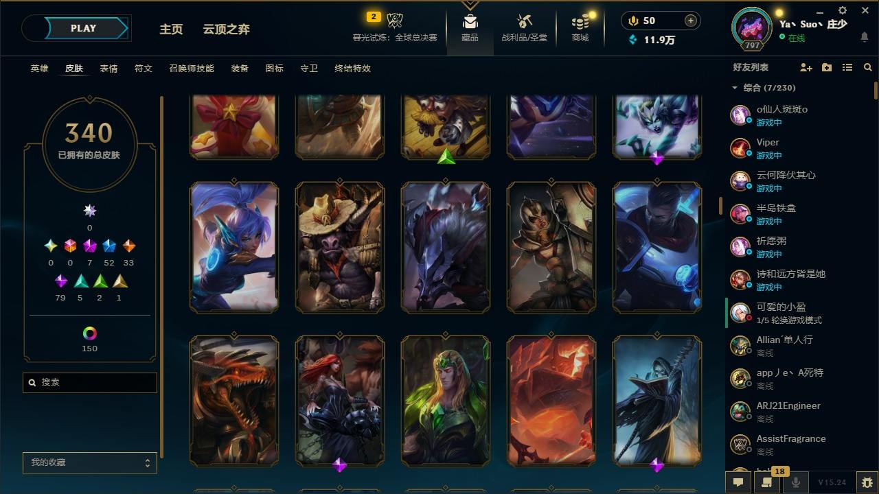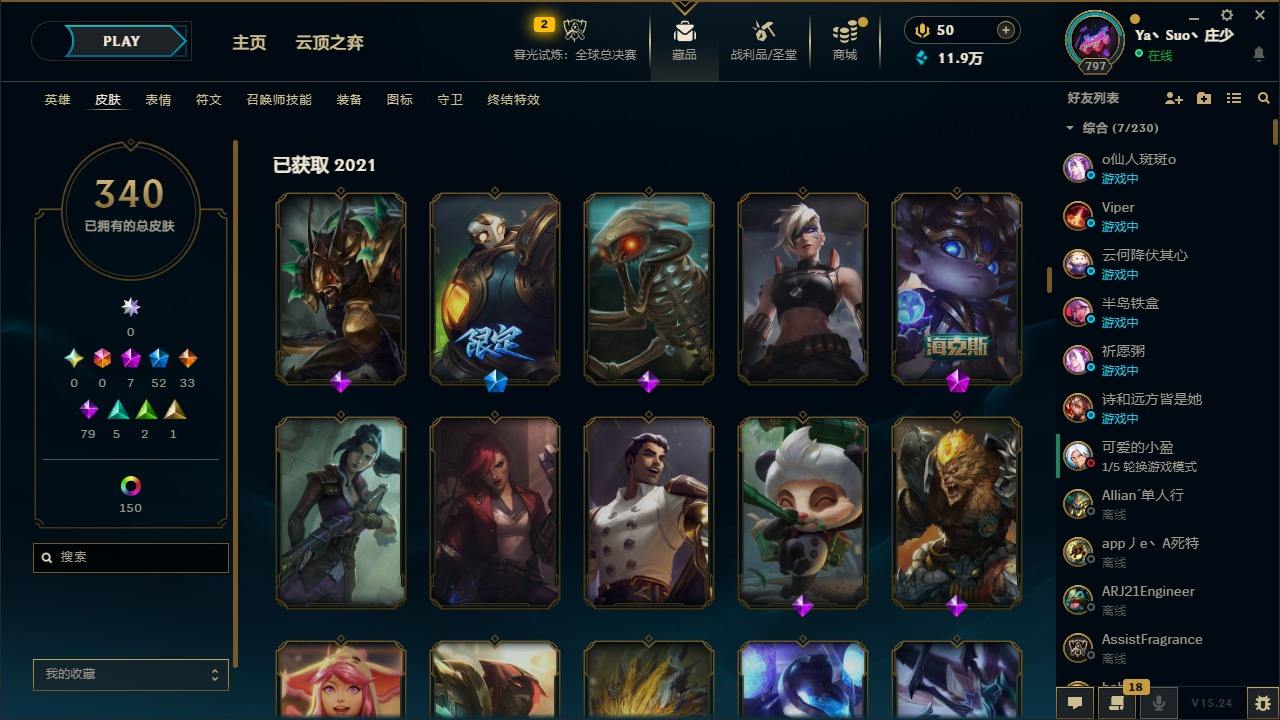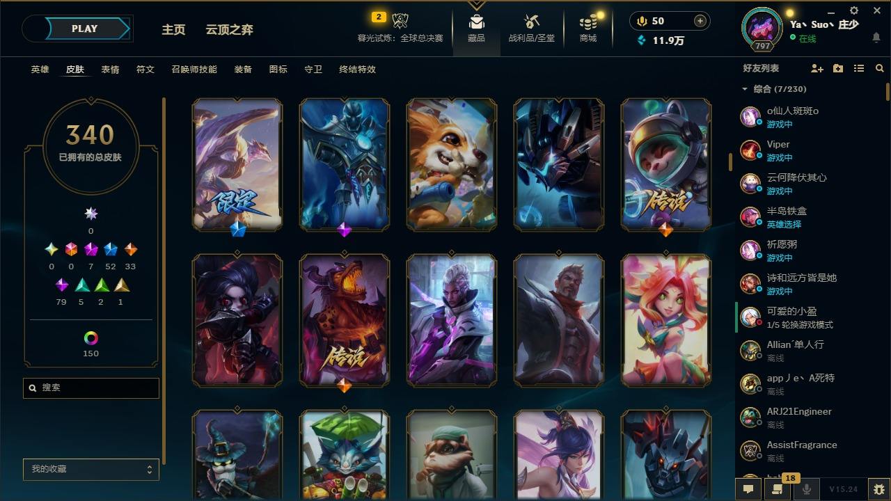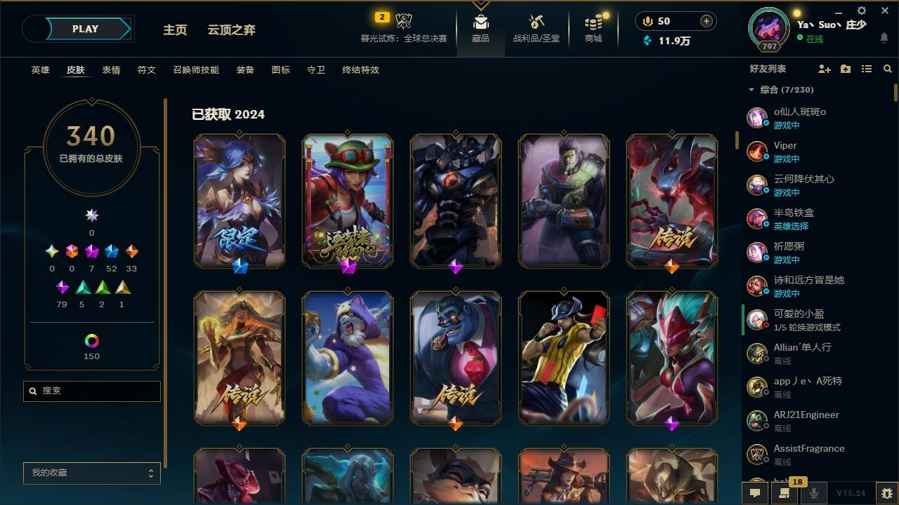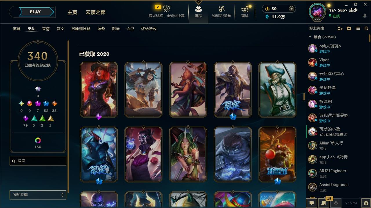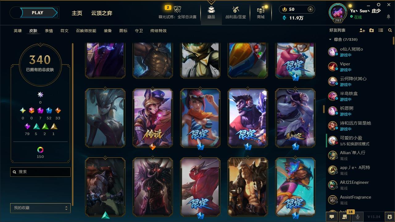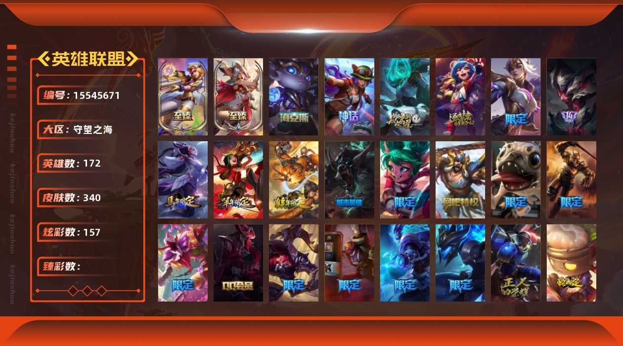 【300907】[15545671]7神话 52限定 33传说 79史诗 340皮肤 157炫彩 172英雄 可二次 可修改实名 【至臻】:至臻 电玩女神 凯特琳,至臻 神凰行者 烈羽焰凰 霞【海克斯】:海克斯 波比【赛季限定皮】:胜利凤凰 艾尼维亚,胜利女神-菲奥娜,胜利剑圣 易,胜利女神 娑娜,胜利之王 泰达米尔,胜利枪神 格雷福斯,胜利枪神 卢锡安,胜利机器人 布里茨,胜利女神 瑟庄妮【冠