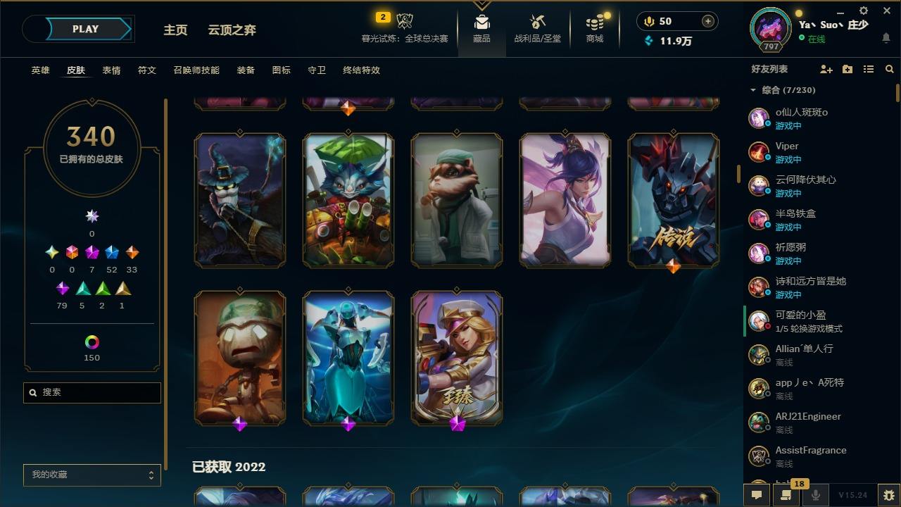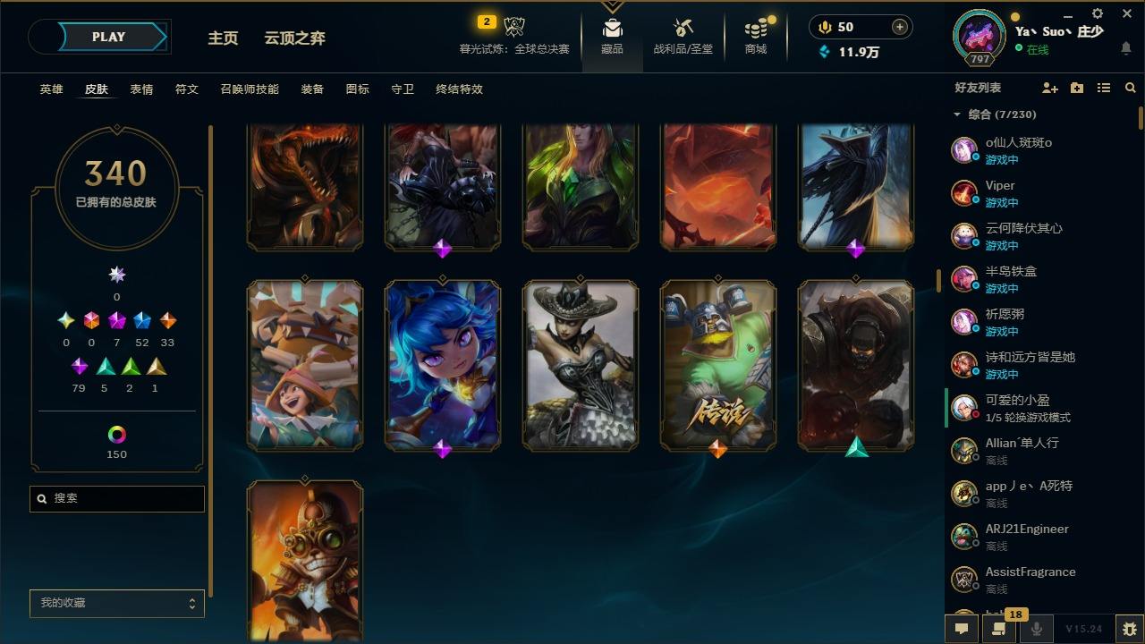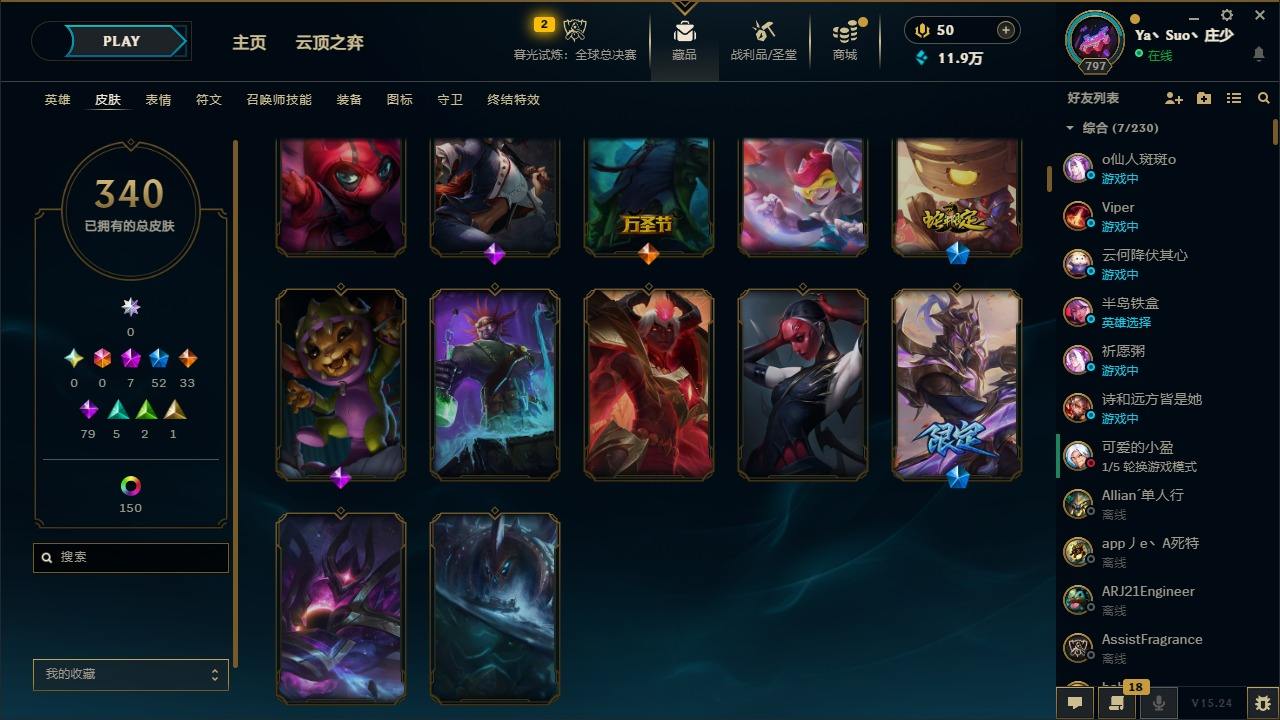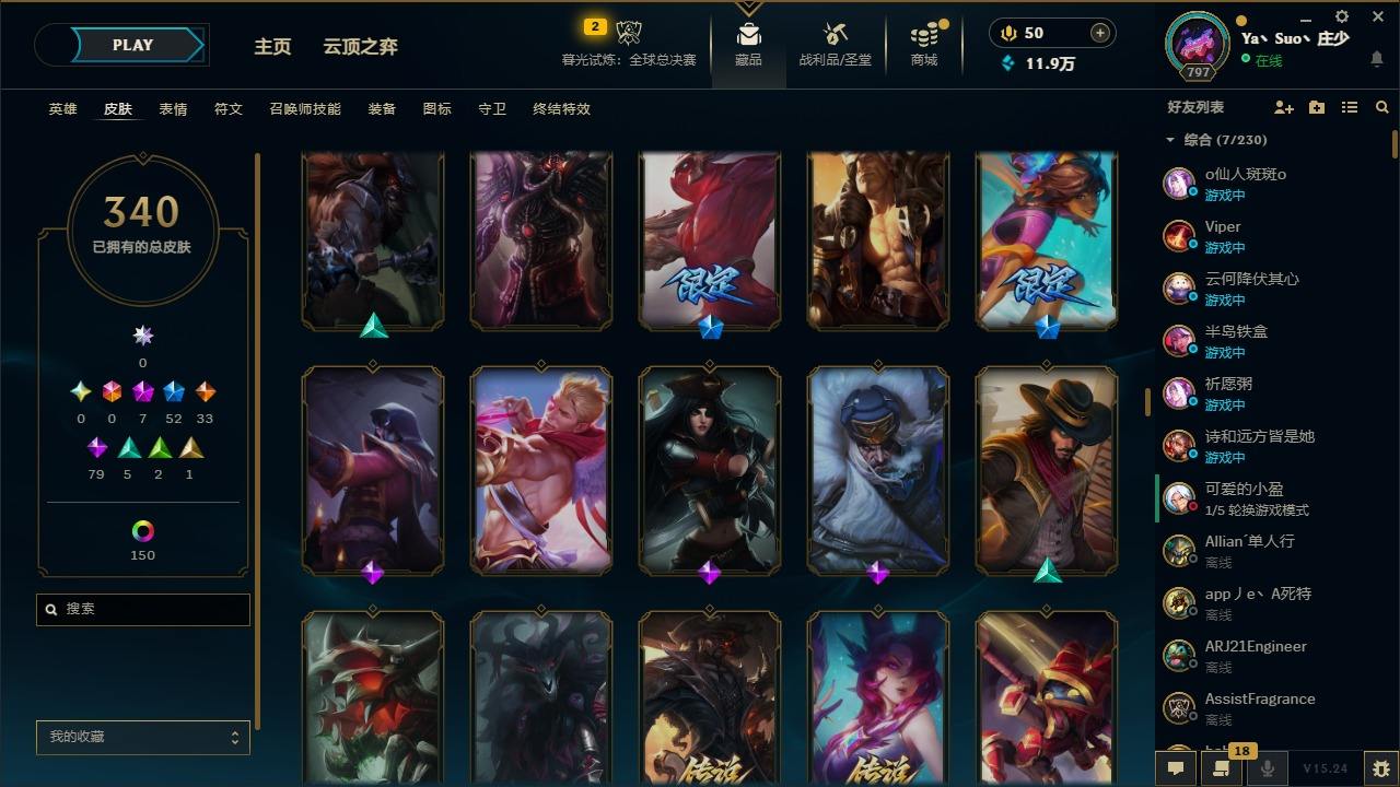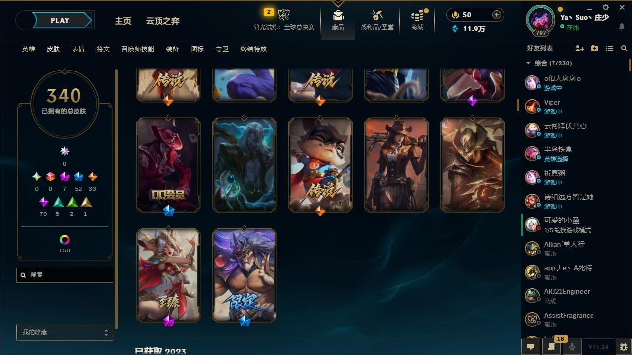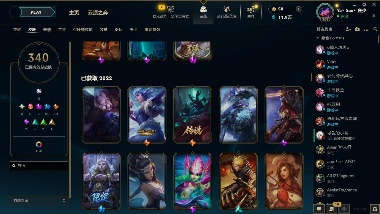 【300907】[15545671]7神话 52限定 33传说 79史诗 340皮肤 157炫彩 172英雄 可二次 可修改实名 【至臻】:至臻 电玩女神 凯特琳,至臻 神凰行者 烈羽焰凰 霞【海克斯】:海克斯 波比【赛季限定皮】:胜利凤凰 艾尼维亚,胜利女神-菲奥娜,胜利剑圣 易,胜利女神 娑娜,胜利之王 泰达米尔,胜利枪神 格雷福斯,胜利枪神 卢锡安,胜利机器人 布里茨,胜利女神 瑟庄妮【冠