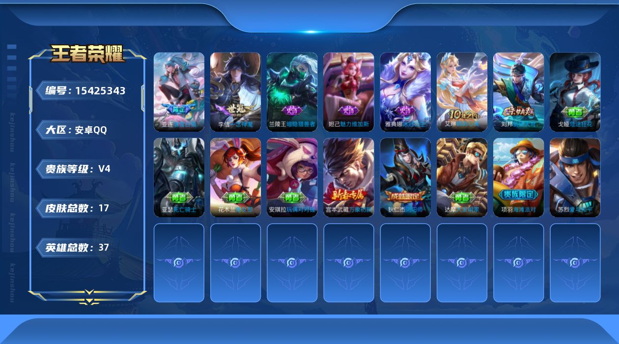 游戏区服:王者荣耀 / 安卓系统 / QQ账号