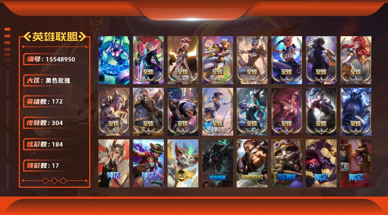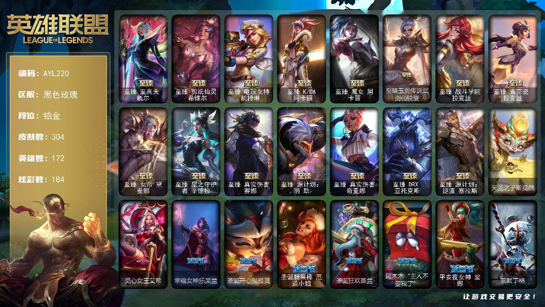 【301690】[15548950]【店主推荐捡漏号】铂金段位-172英雄-304皮肤-184炫彩-1终极-17神话-45限定-44传说-36史诗【珍稀头像】:至爱的鹿头像【热门头像】:爱情之歌头像【至臻皮肤】:至臻至高天凯尔,至臻剪纸仙灵希维尔,至臻电玩女神凯特琳,至臻KDA阿卡丽,至臻魔女阿卡丽,至臻玉剑传说武剑仙锐雯,至臻战斗学院拉克丝,至臻青花瓷拉克丝,至臻女帝黛安娜,至臻星之守护者辛德