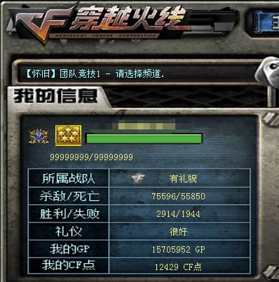 游戏区服:穿越火线 / 北部战区 / 山东一区互 通