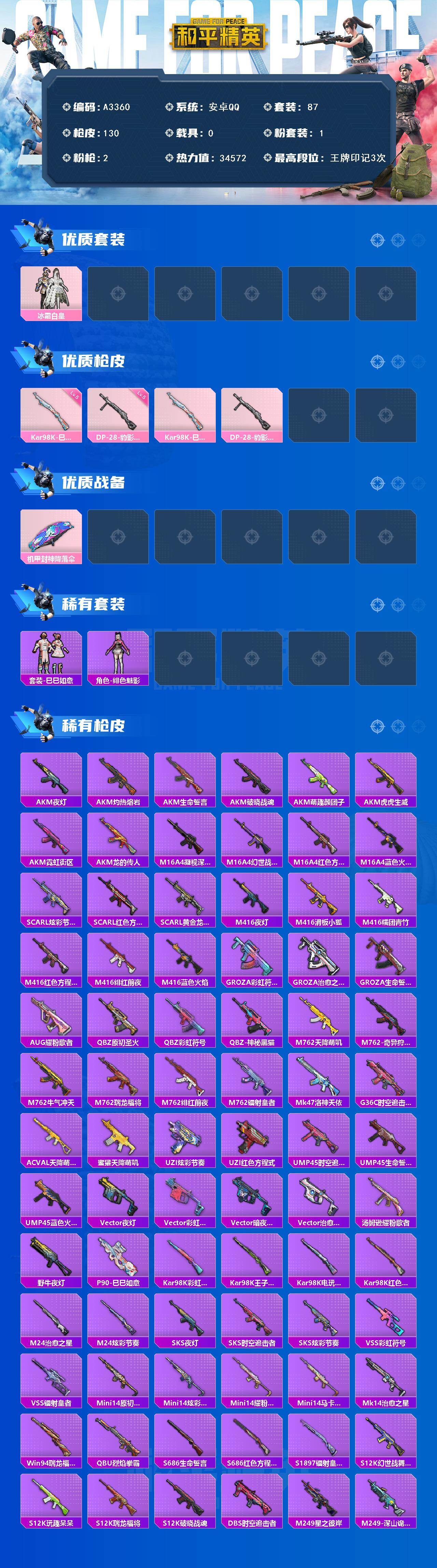 游戏区服:和平精英 / 安卓系统 / QQ账号