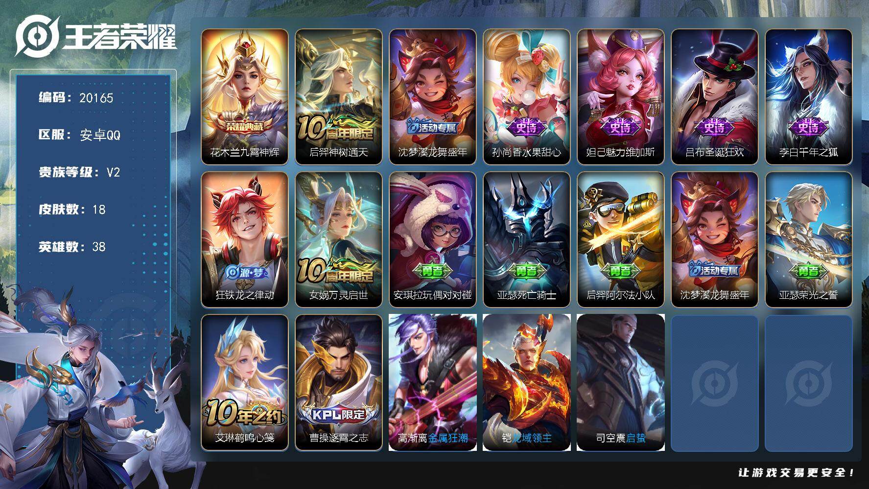 游戏区服:王者荣耀 / 安卓系统 / QQ账号