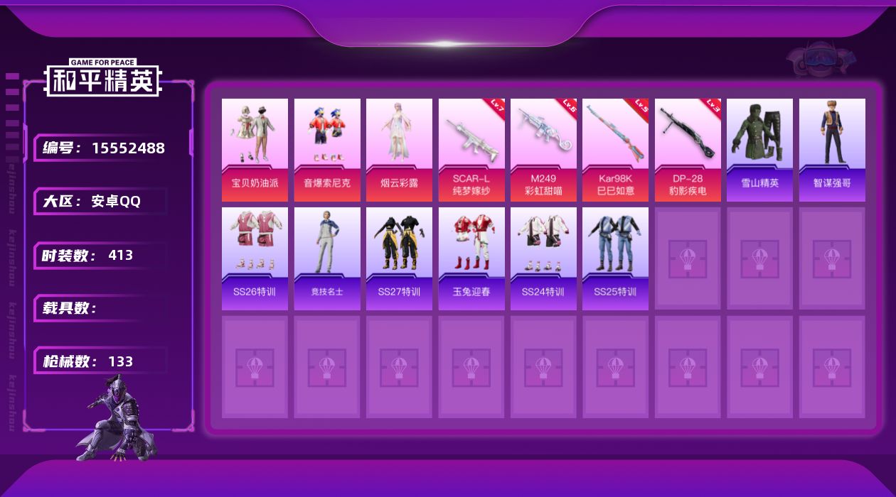 游戏区服:和平精英 / 安卓系统 / QQ账号
