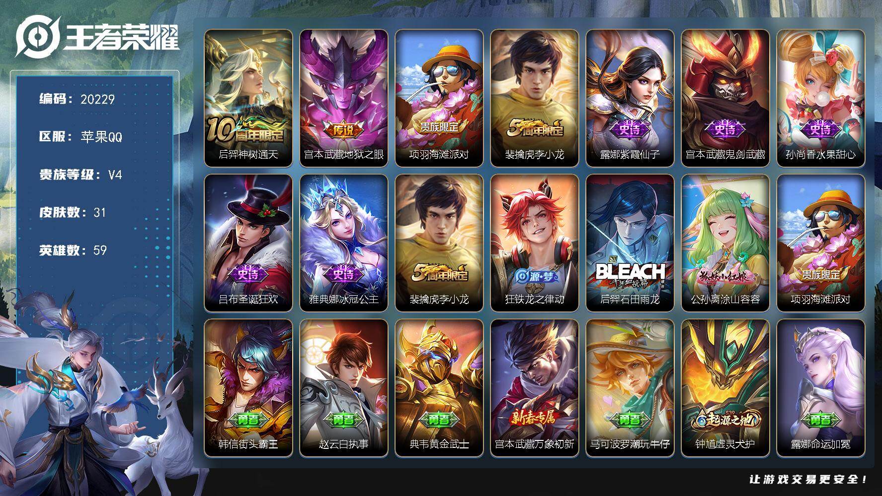 游戏区服:王者荣耀 / 苹果系统 / QQ帐号