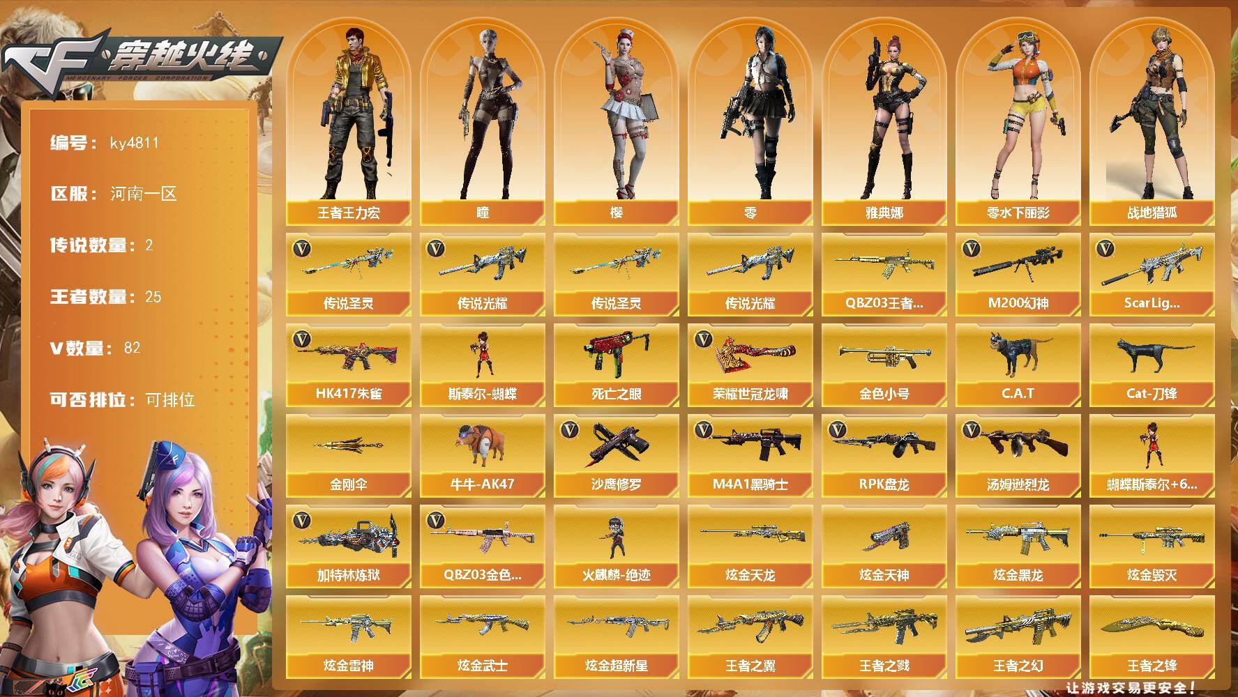【302488】【302488】[15554392]河南一区-82V-25王者-10炫金【传说武器】:传说光耀,传说圣灵【热门武器】:传说光耀,传说圣灵,QB