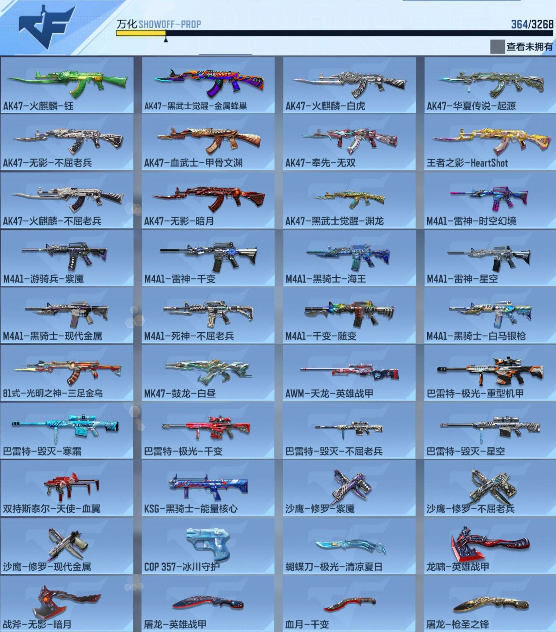 【302936】[15558100]x1136 VIP7,王者武器7,英雄级武器191,万化364,角色35 【王者武器】:王者之影/王者之兽/王者之怒/王者幻神/王者之蝶/王者之影闪光弹/王者之翼闪光弹 ;【热门皮肤】:屠龙-英雄战甲/屠龙-星空/擎天觉醒-现代金属/AK47-火麒麟-白虎/AK47-奉先-无双/王者之影闪光弹-HeartShot/AK47-无影-暗月/巴雷特-毁灭-寒霜/战斧