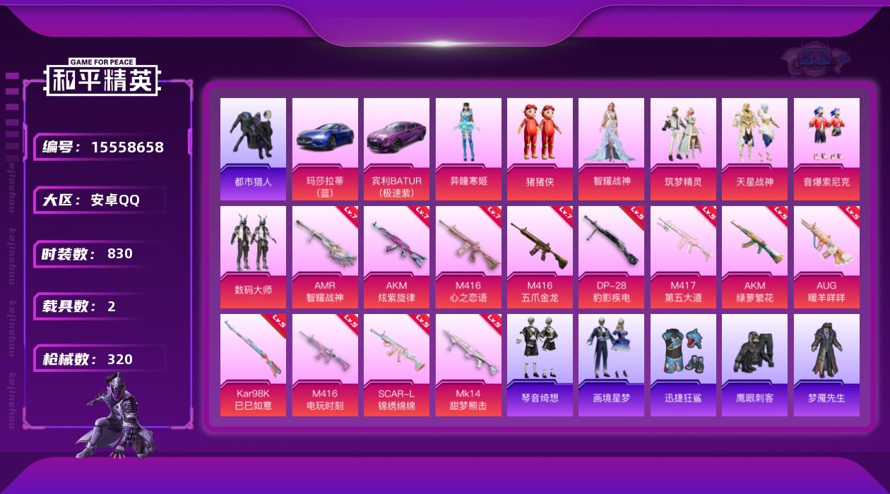 【302991】【不可二次】【安卓QQ】龟仙人 AKM-绿萝繁花 M416-五爪金龙 漫步者 都市猎人 M24-奇异狩猎者 M249-古堡领主 极速红龙 M416-电玩时刻 风花雪月飞行器 M416-心之恋语 瑞龙福将 抹茶蜜豆 AWM-黄金龙骨 猪猪侠 团圆交子 迅捷狂鲨 M762-瑞龙福将 M417射手步枪 萌物绒绒飞行器 音爆索尼克 诡面顽熊 SCAR-L-锦绣绵绵 玛莎拉蒂蓝色 AKM-